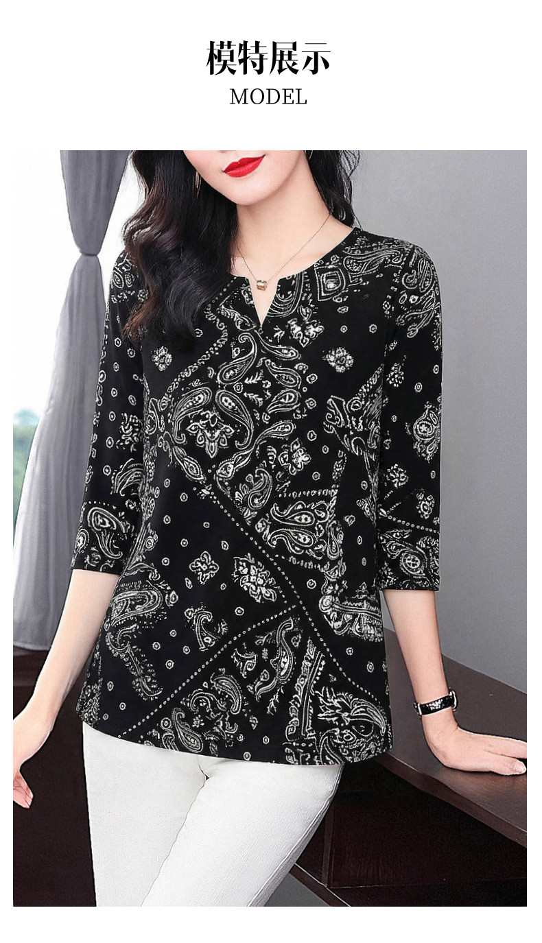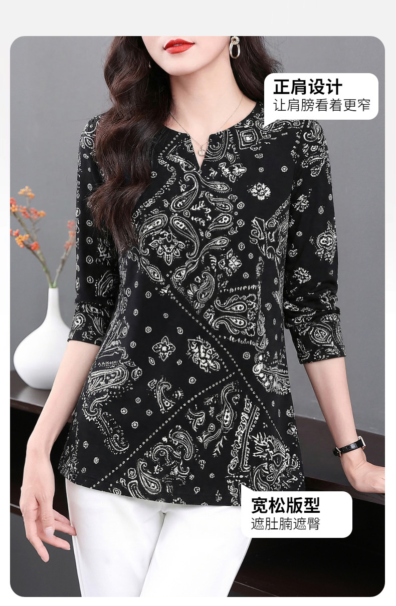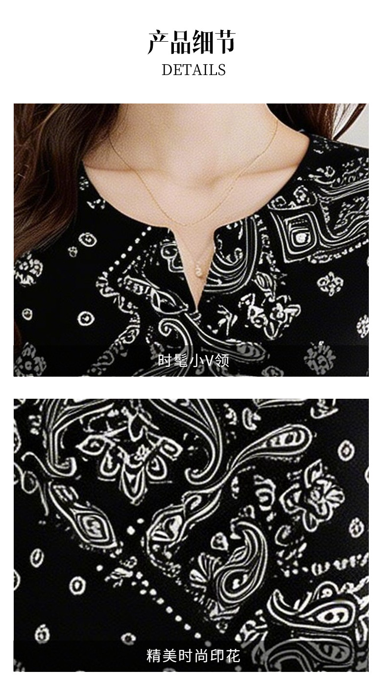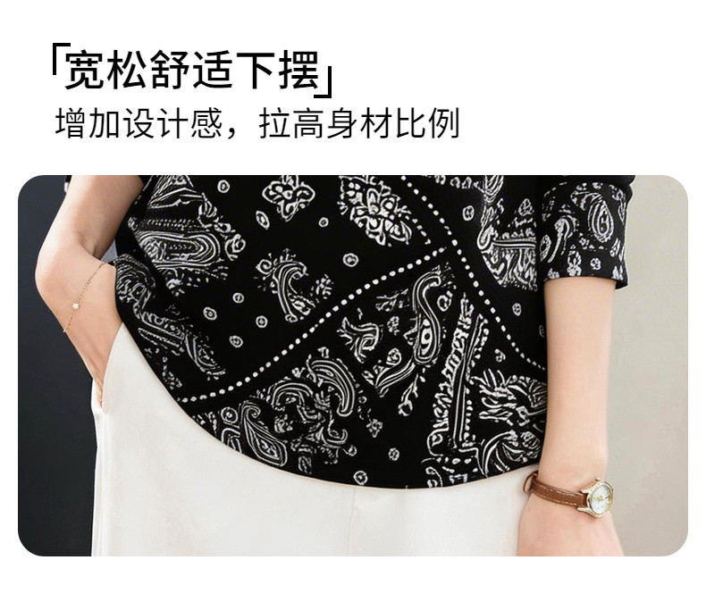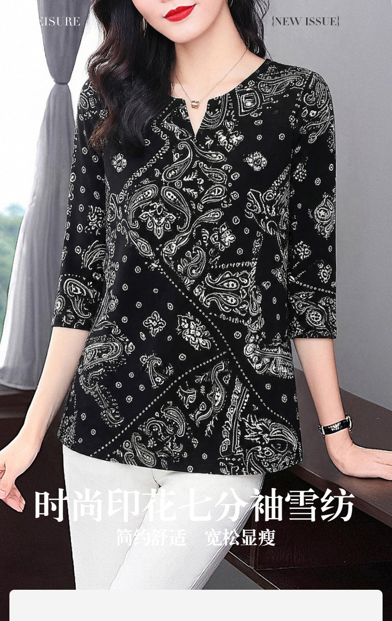 印花七分袖雪纺衫女士春夏季2026年新款大码女装显瘦宽松中袖上衣