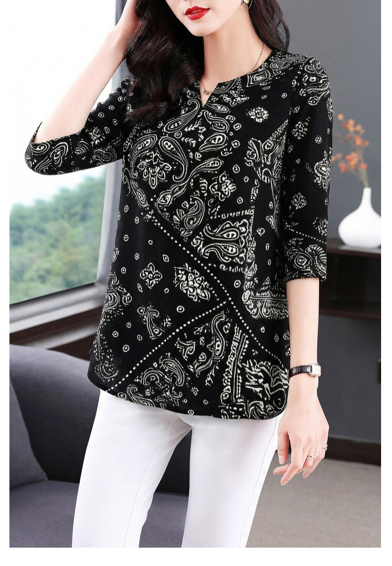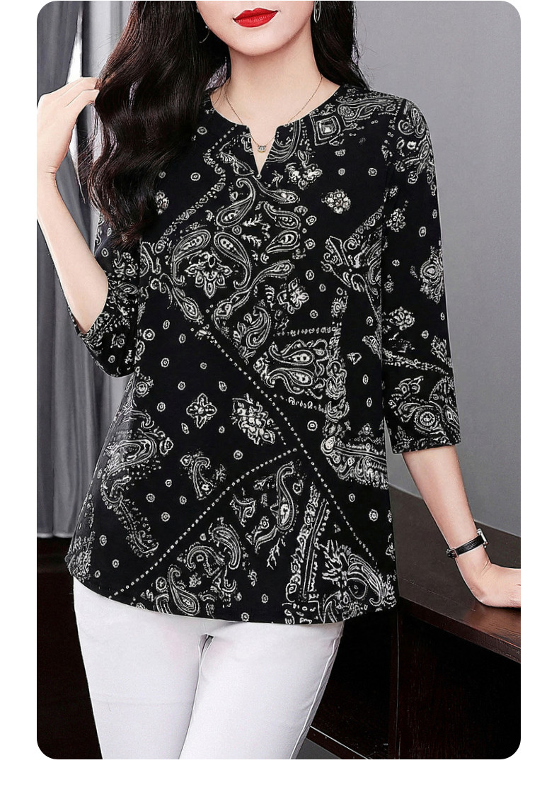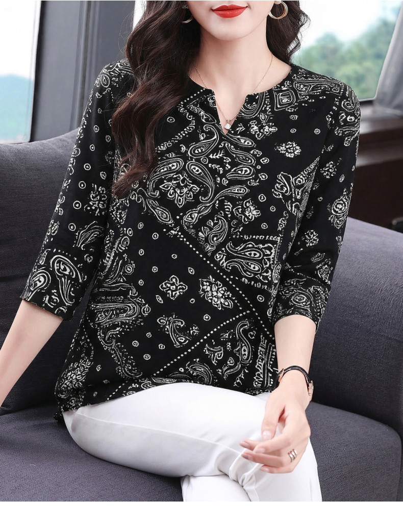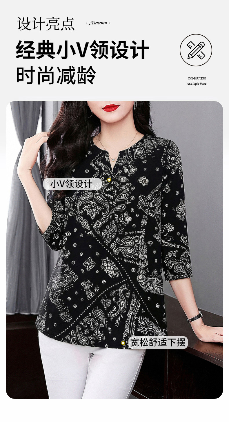 印花七分袖雪纺衫女士春夏季2026年新款大码女装显瘦宽松中袖上衣