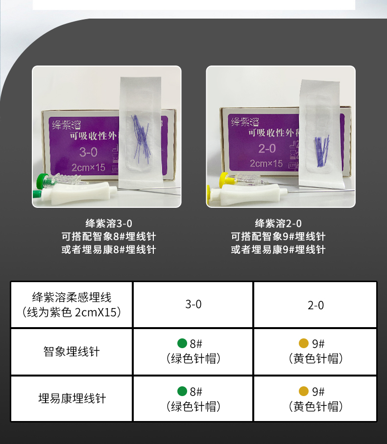 绛紫溶PGA高分子线 “溶脂线” 2cm 紫线 V型对折旋转埋线法