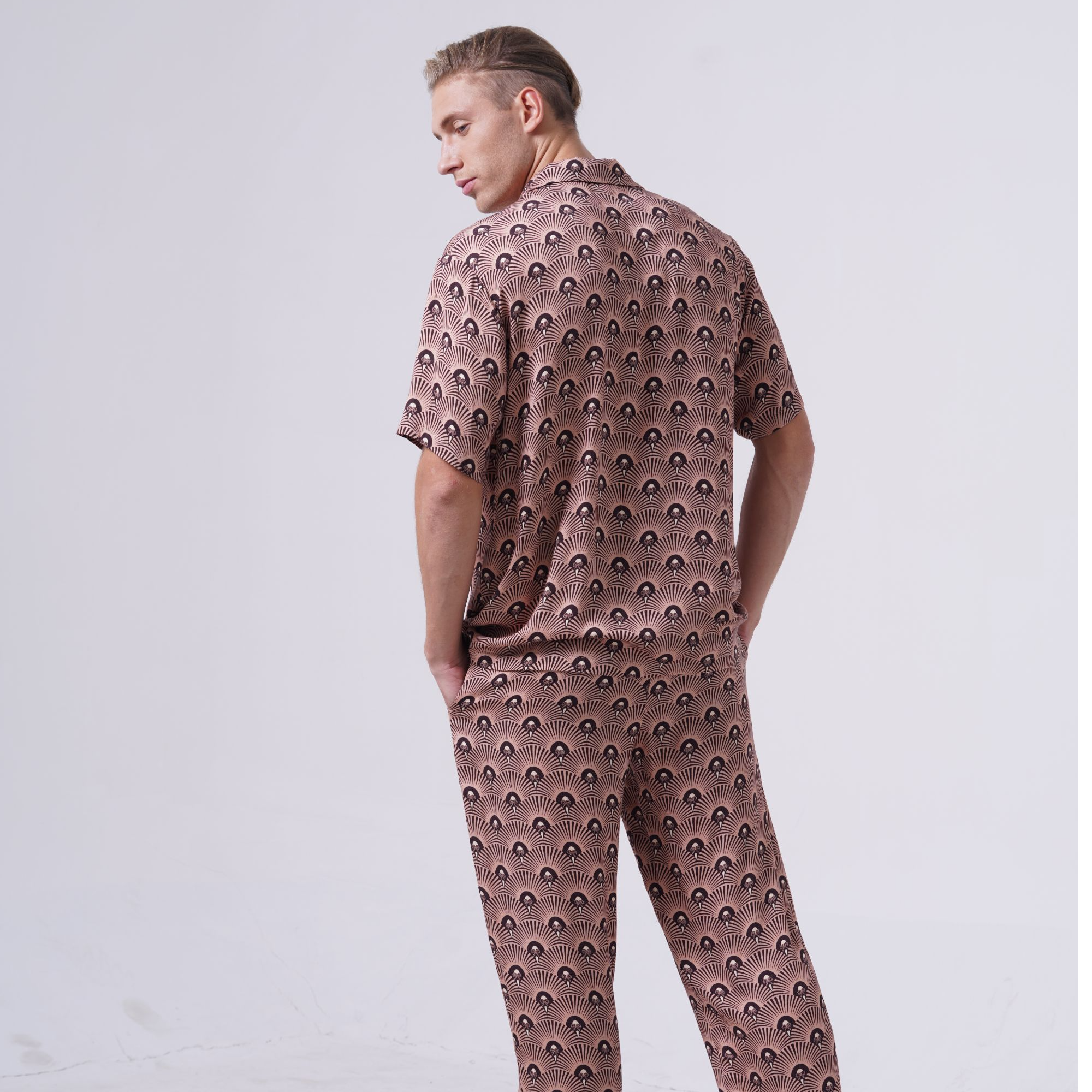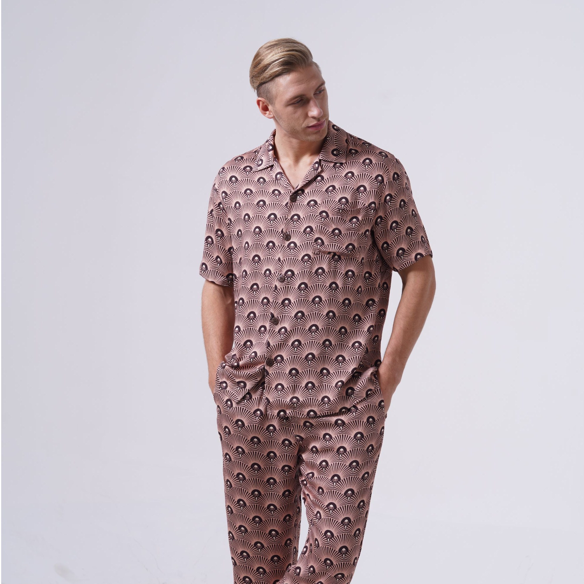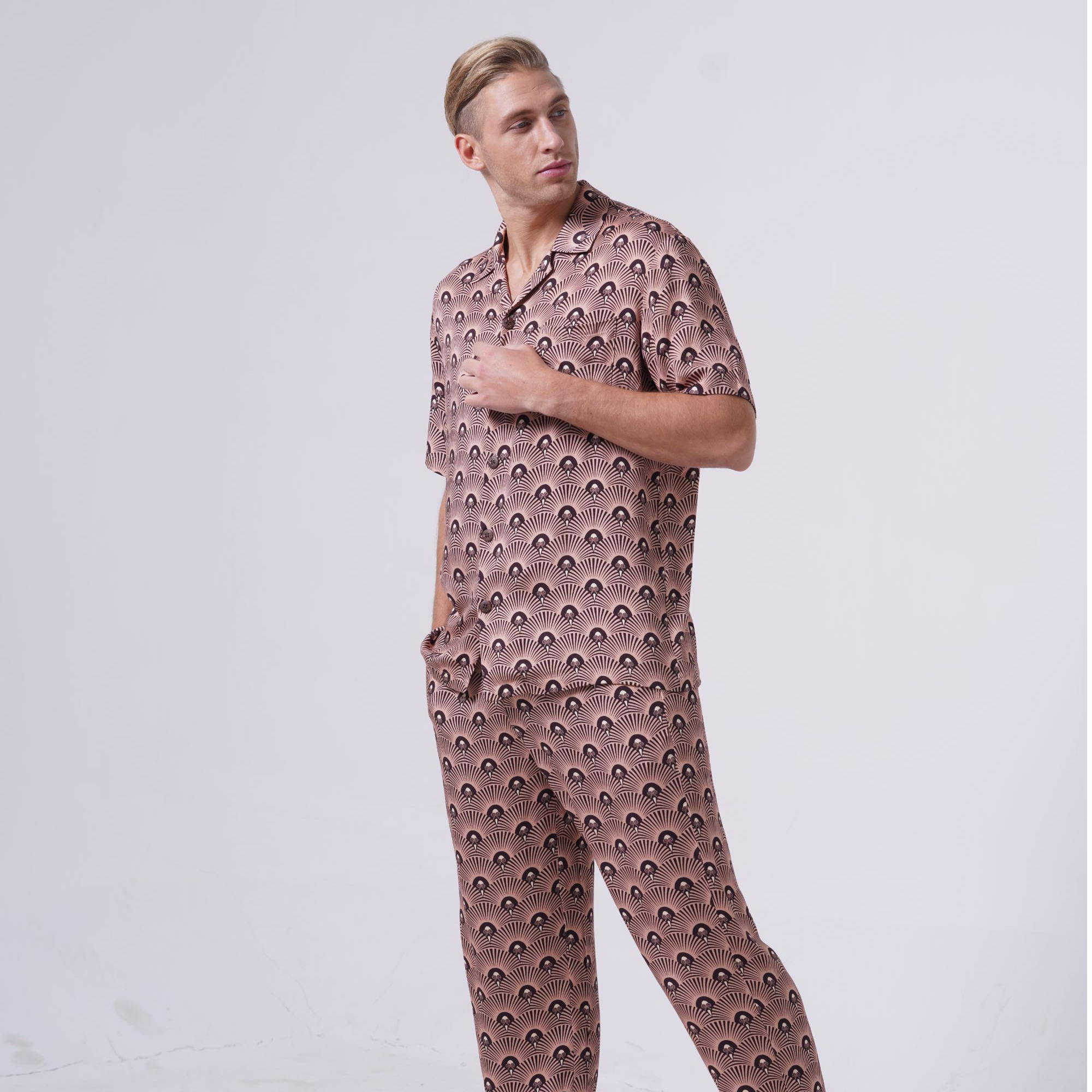 男印花开襟短袖睡衣套装PE21300