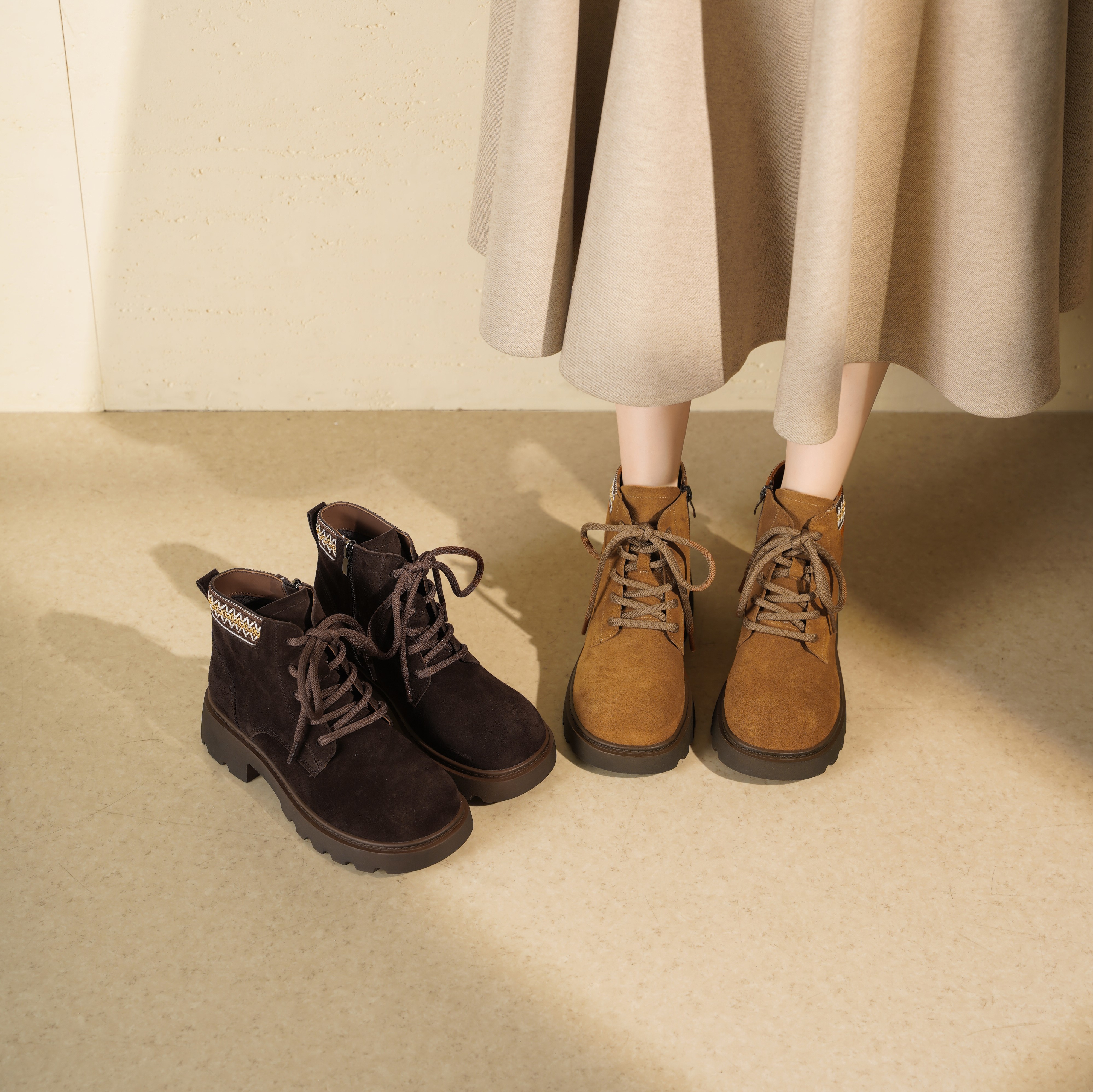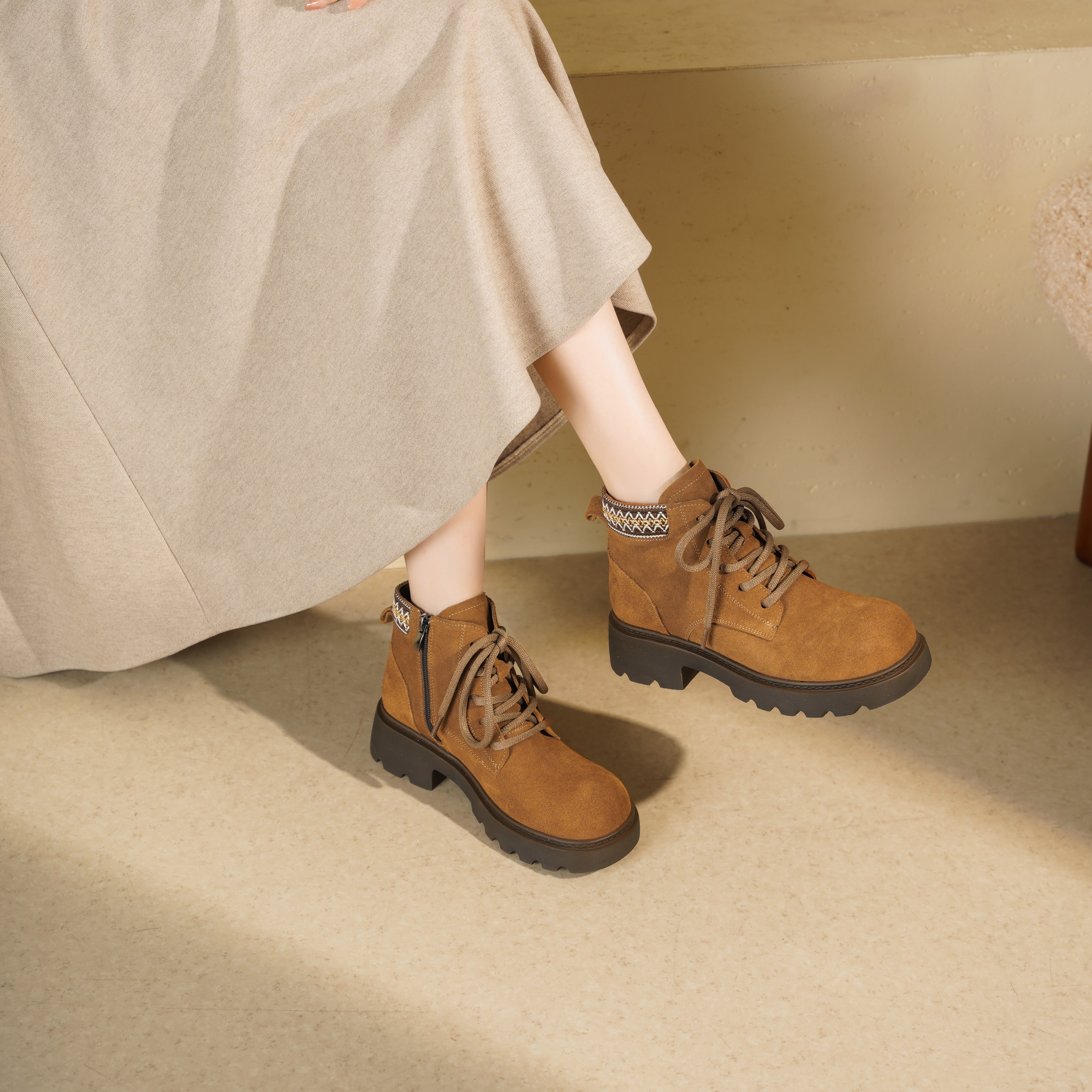 【绒里可选】西村名物2025年冬季新款英伦风厚底防滑系带马丁靴T25DS49801