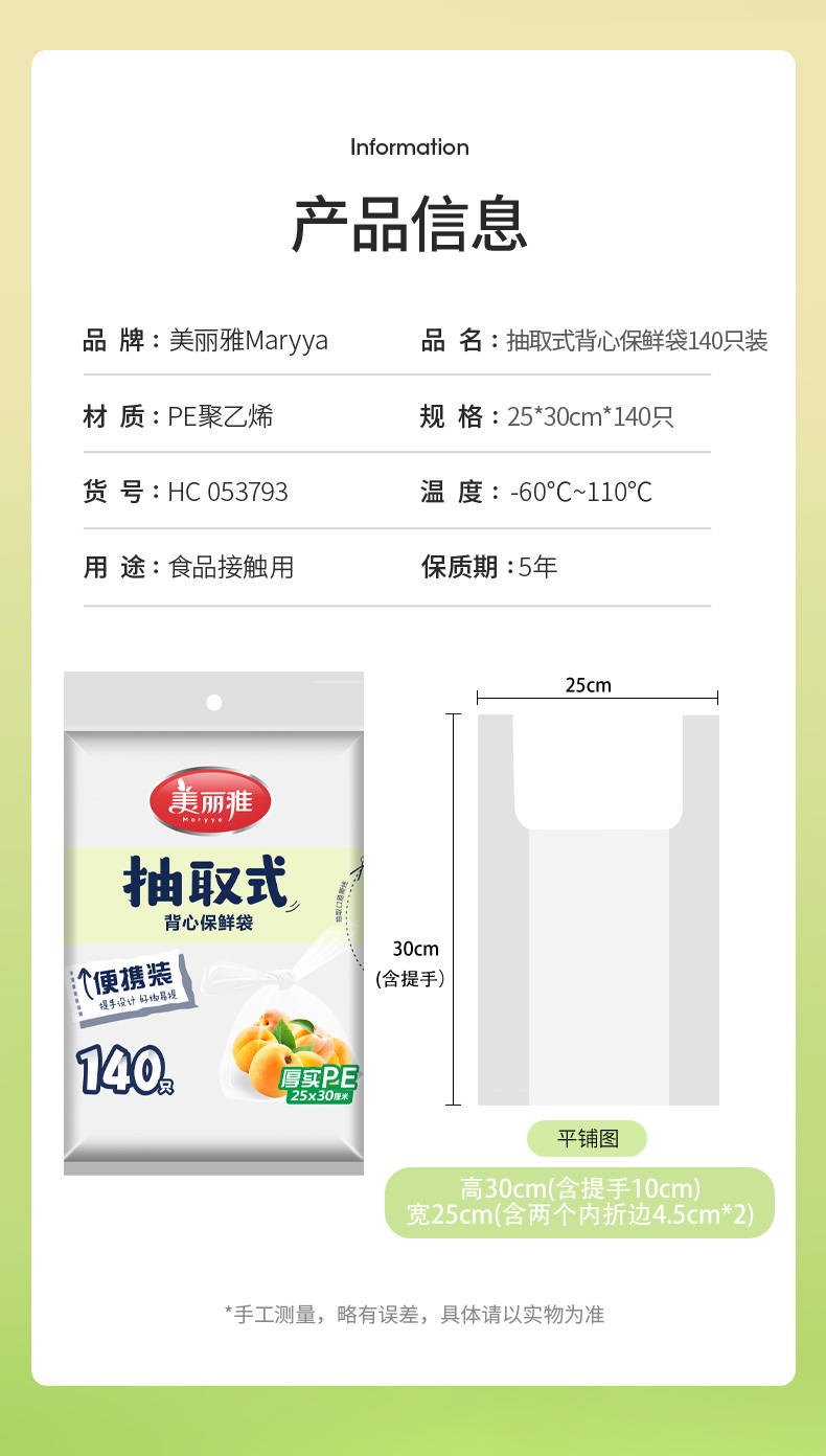 【批发】美丽雅背心式抽取保鲜袋