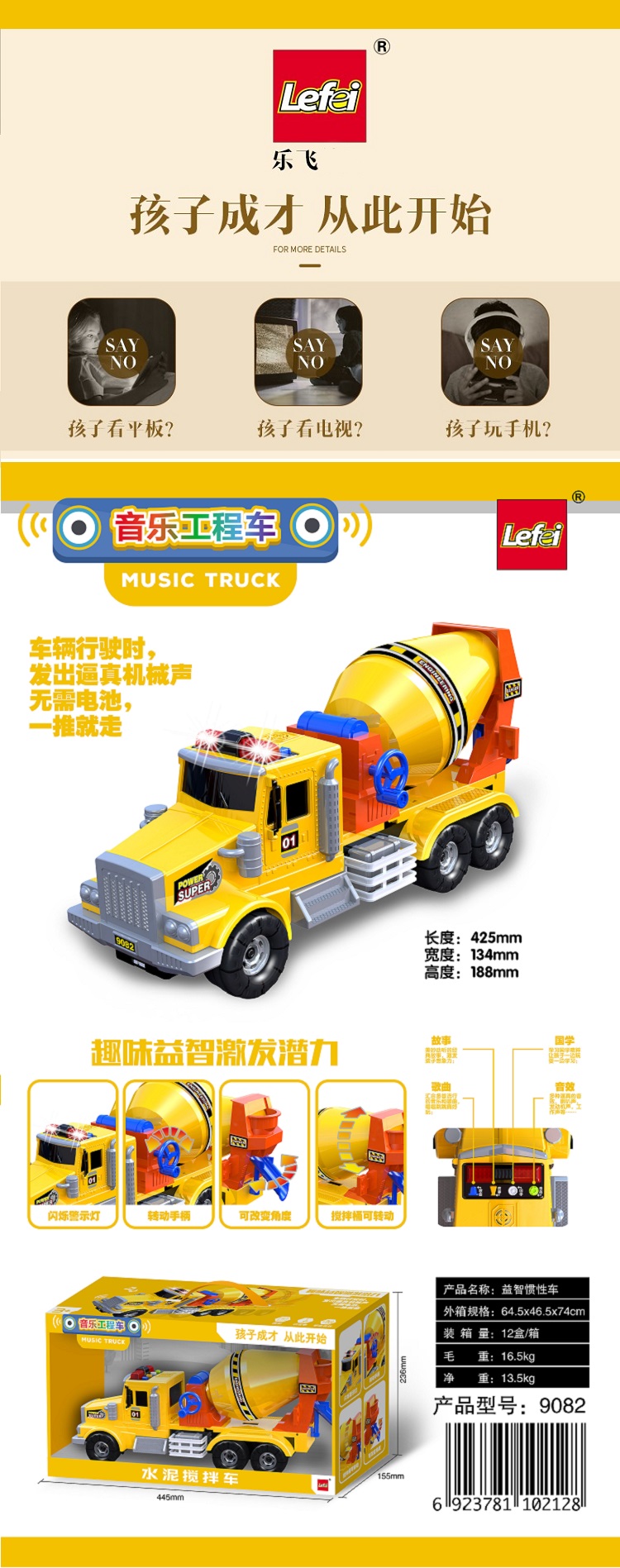 乐飞灯光音乐讲故事-大力搅拌车9082
