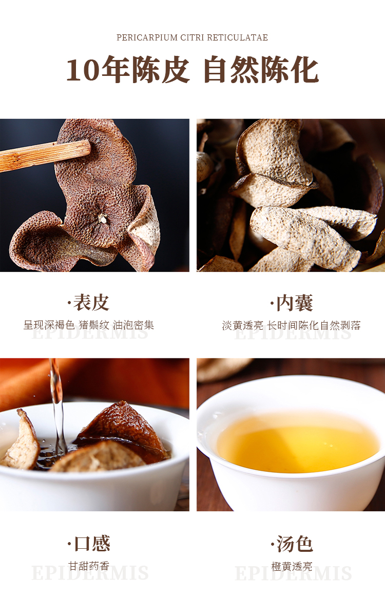 存放时间较长的陈皮,颜色会逐渐变深,质地会变得更加酥脆,香气也会更加浓郁