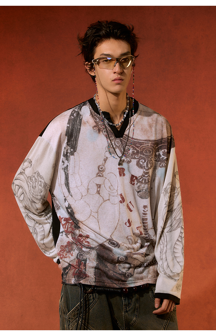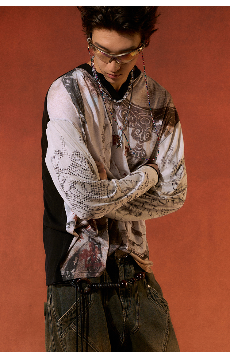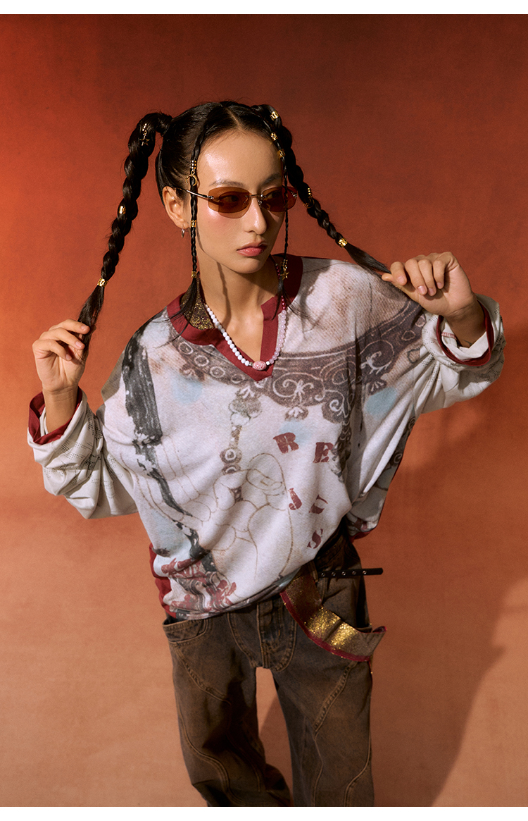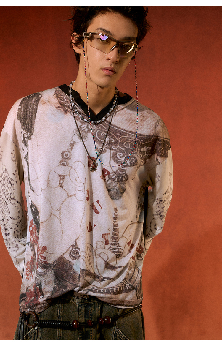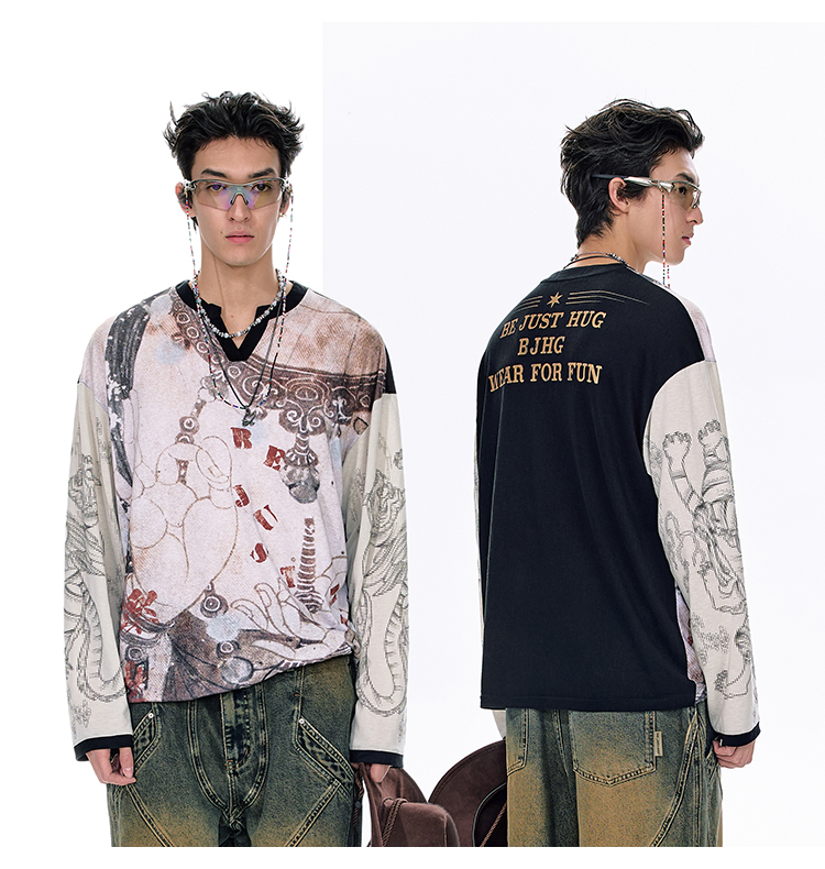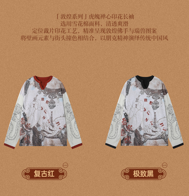 【敦煌联名】BJHG不计后果 朋克长袖男T恤凉感中国风针织打底衫女