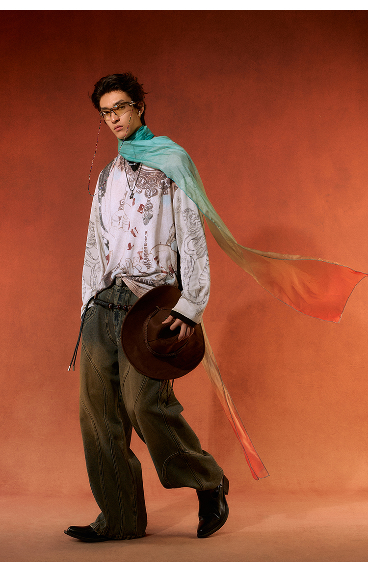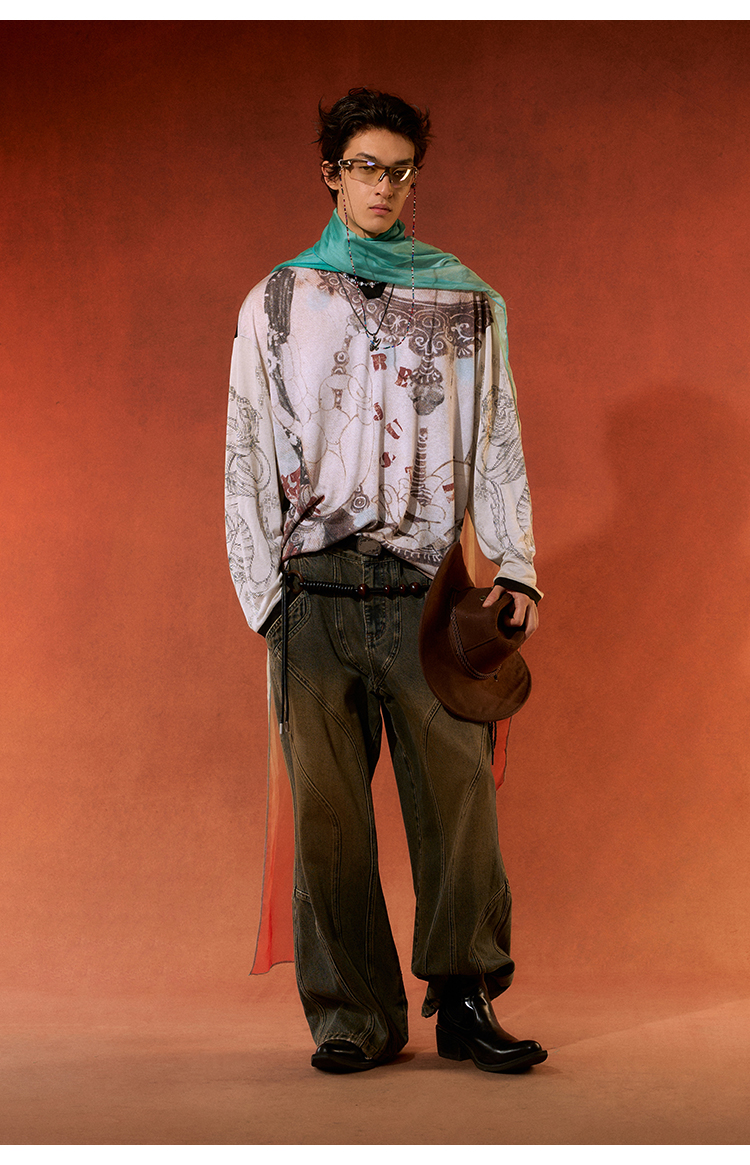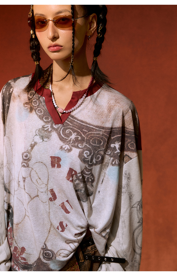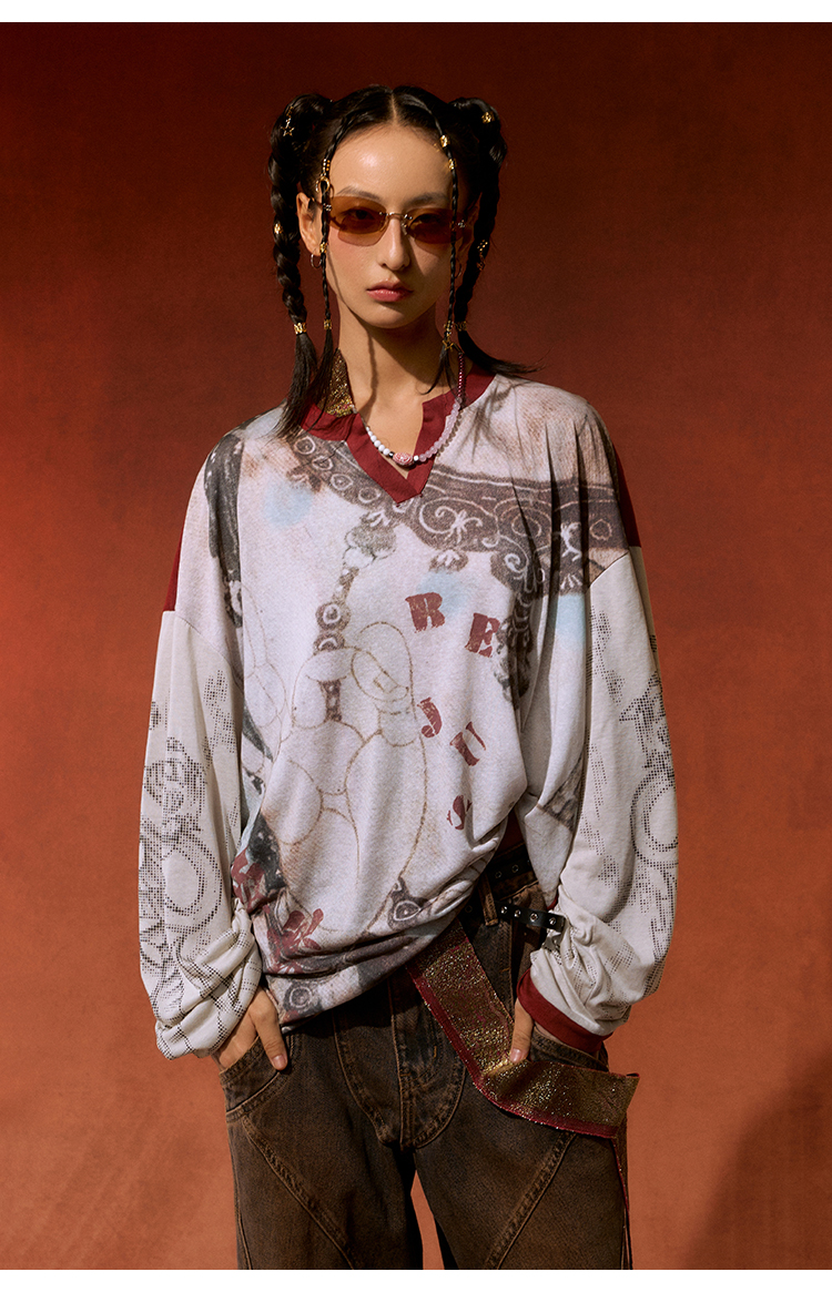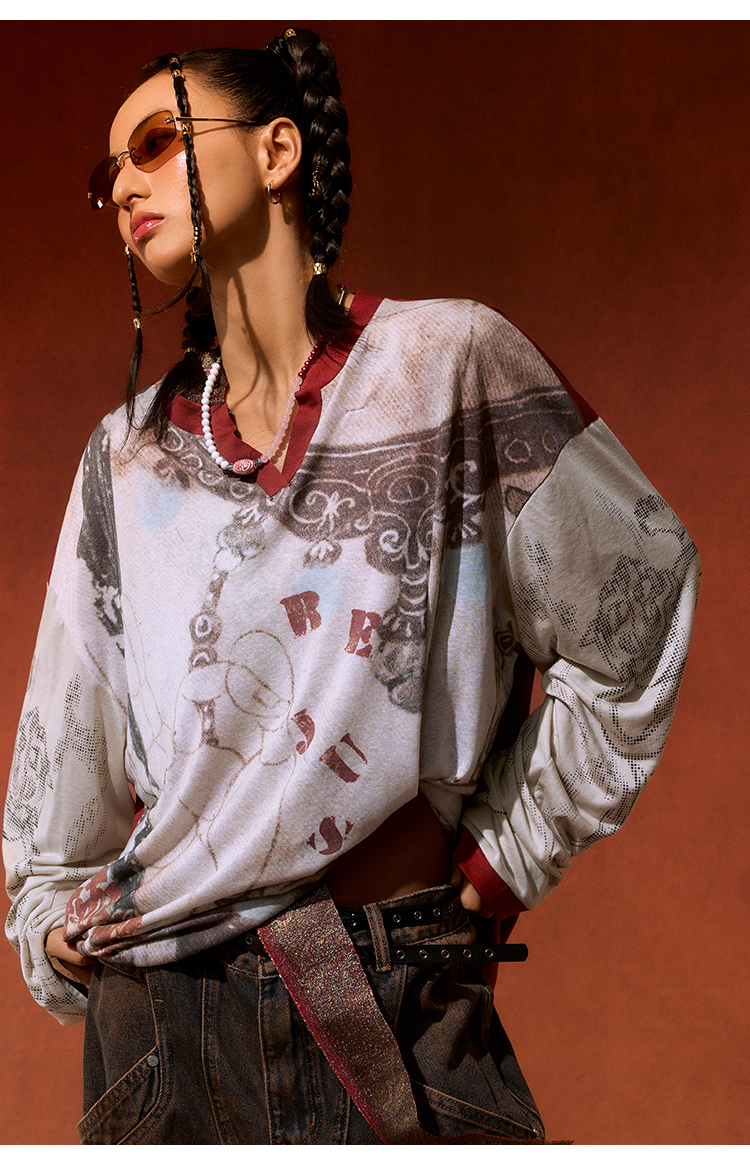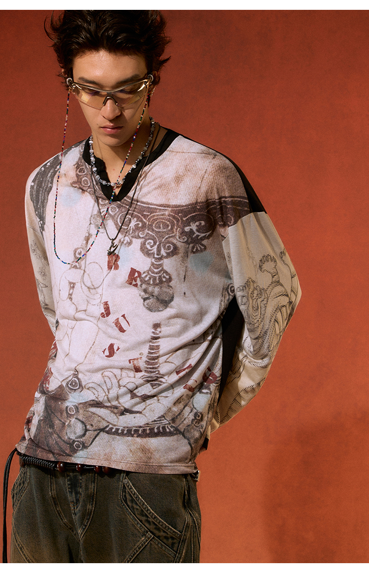 【敦煌联名】BJHG不计后果 朋克长袖男T恤凉感中国风针织打底衫女