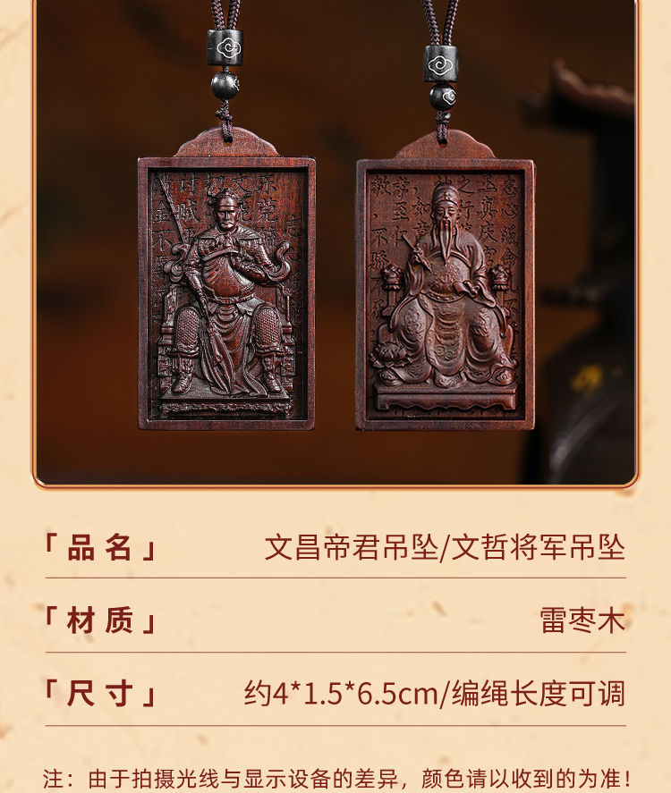 2026雷击木吊坠北斗南斗朱砂刻字文哲大将军文chang帝君可打开吊坠男女同款