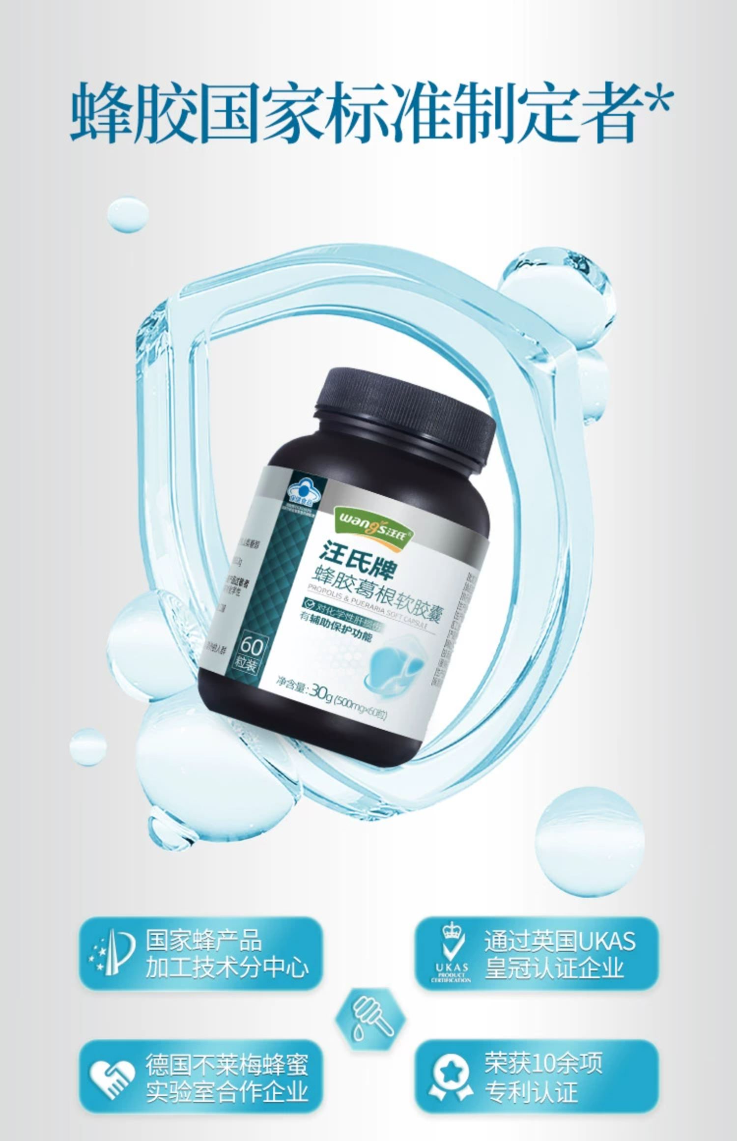 汪氏牌蜂胶葛根软胶囊30g 养护肝损伤 呵护酒精肝
