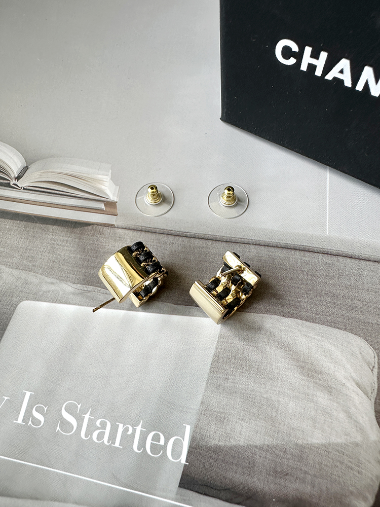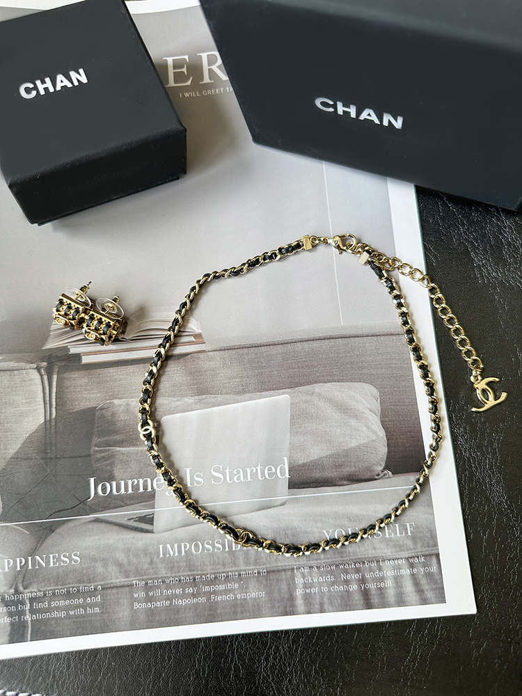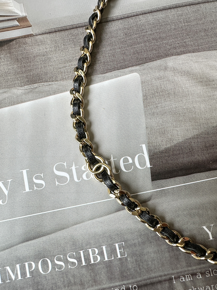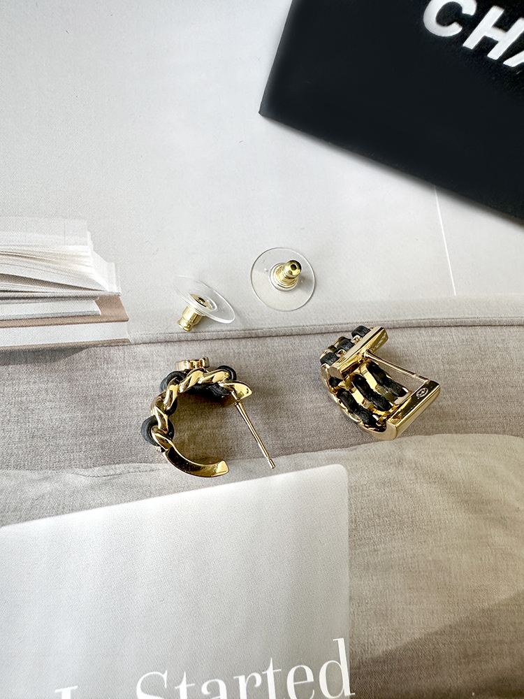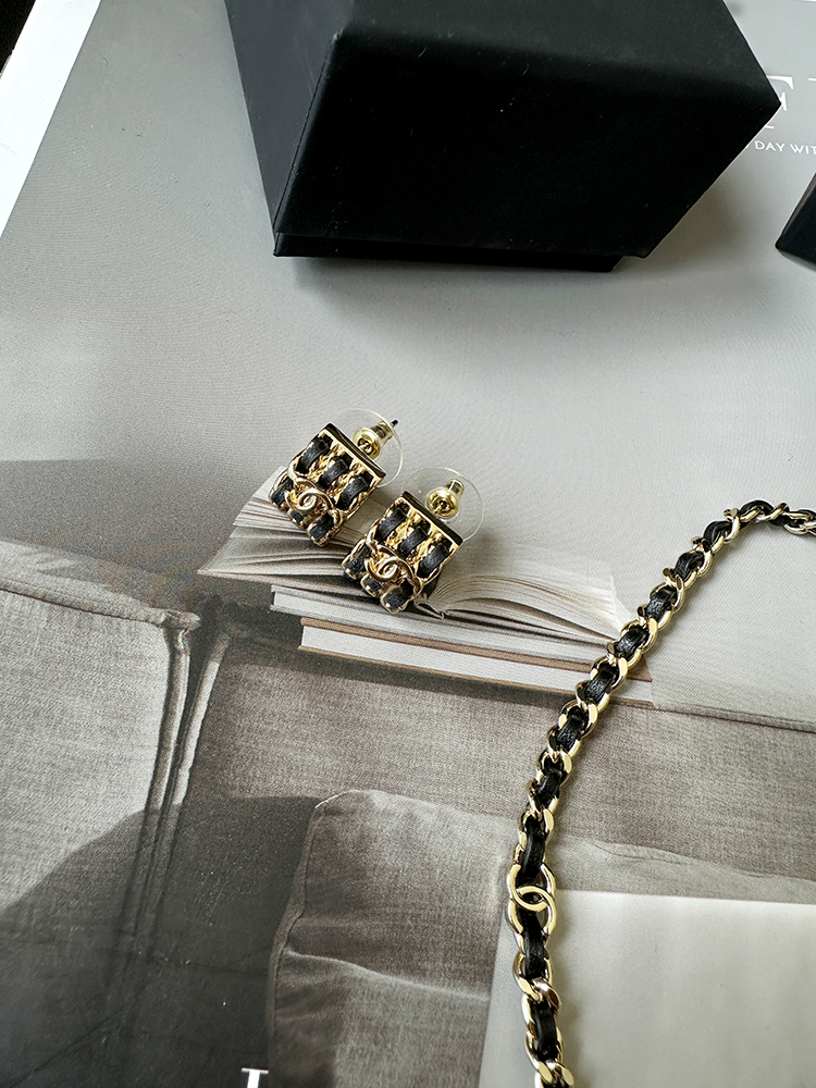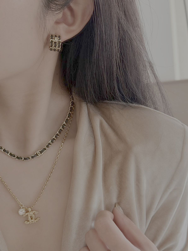 THS-无 香家 不容拒绝的黑金皮穿编织项链 耳饰 2款 CU1346