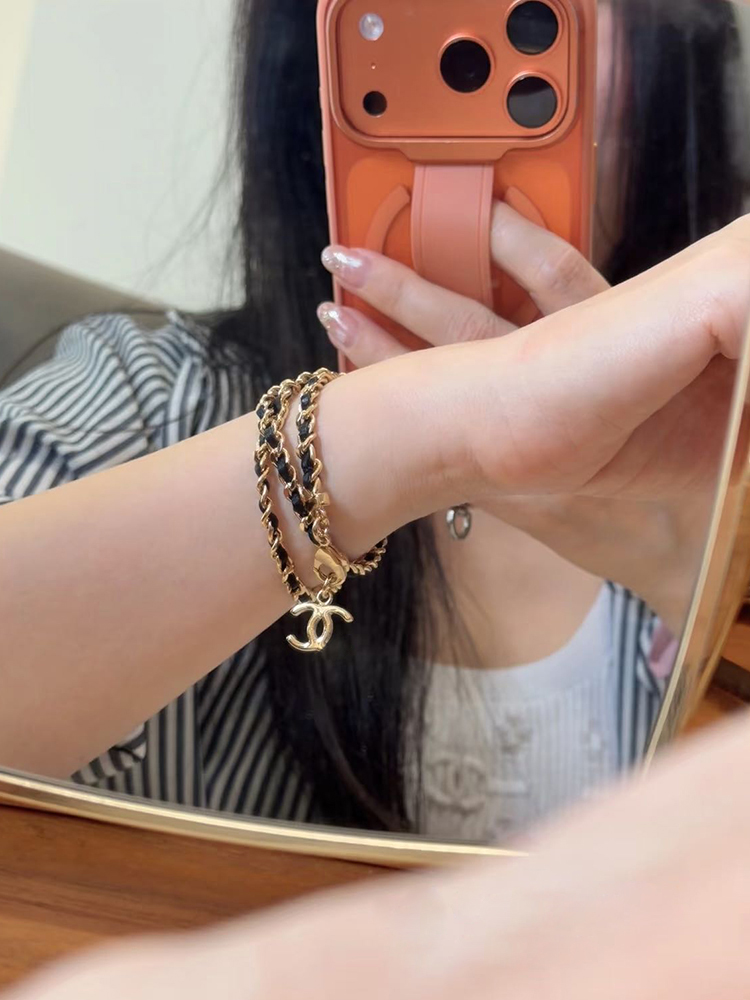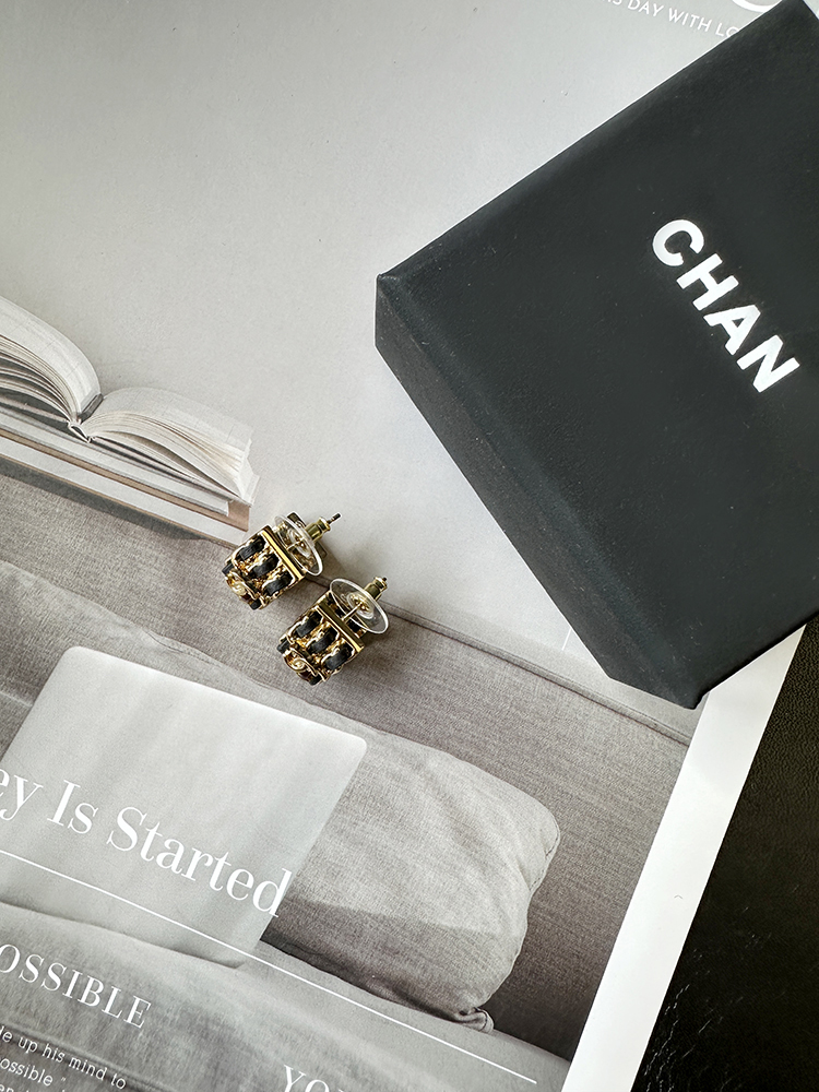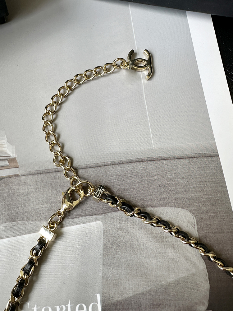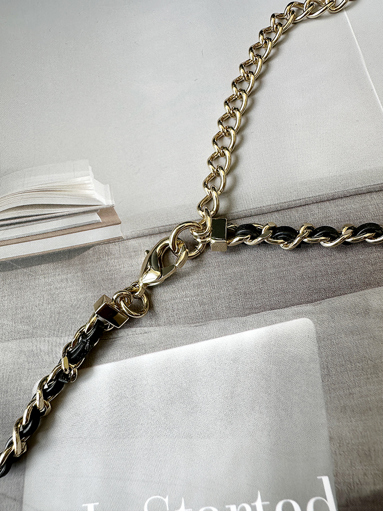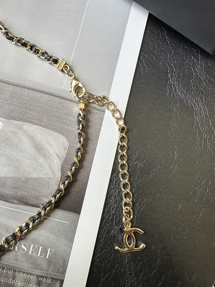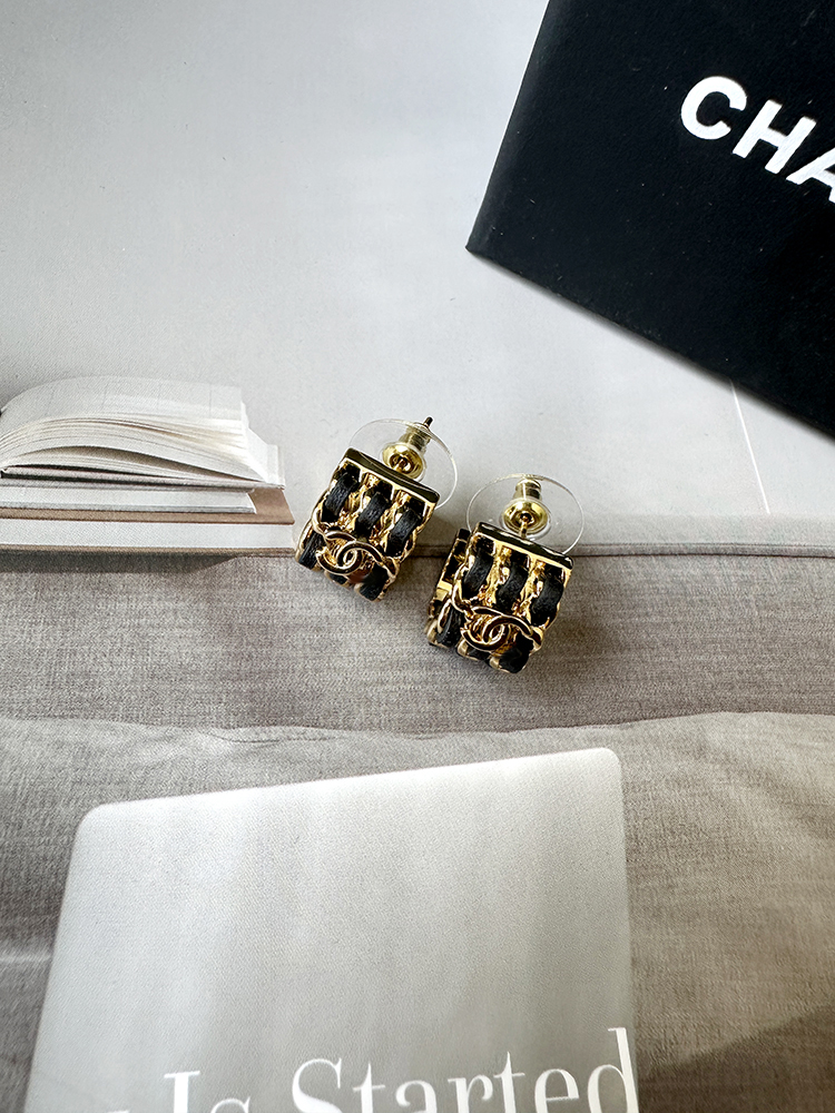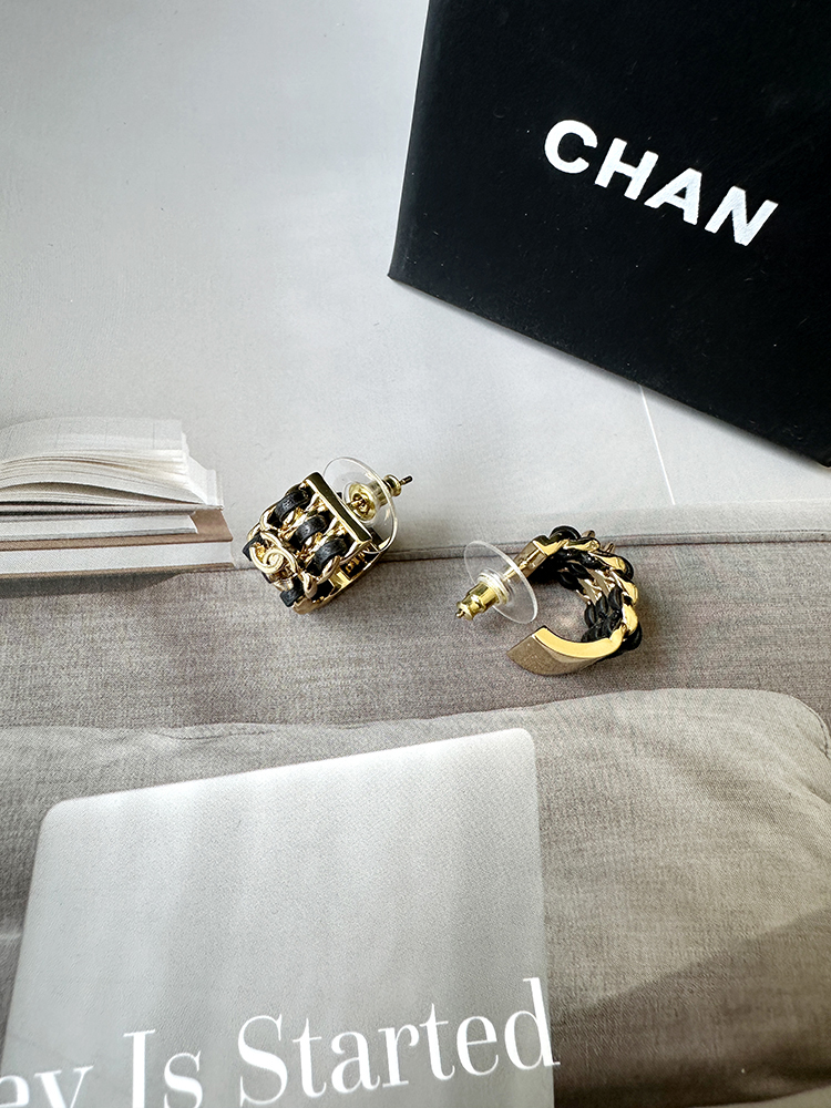 THS-无 香家 不容拒绝的黑金皮穿编织项链 耳饰 2款 CU1346