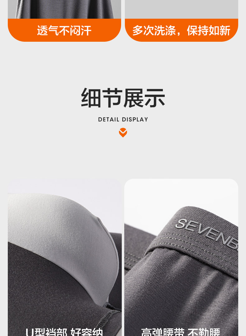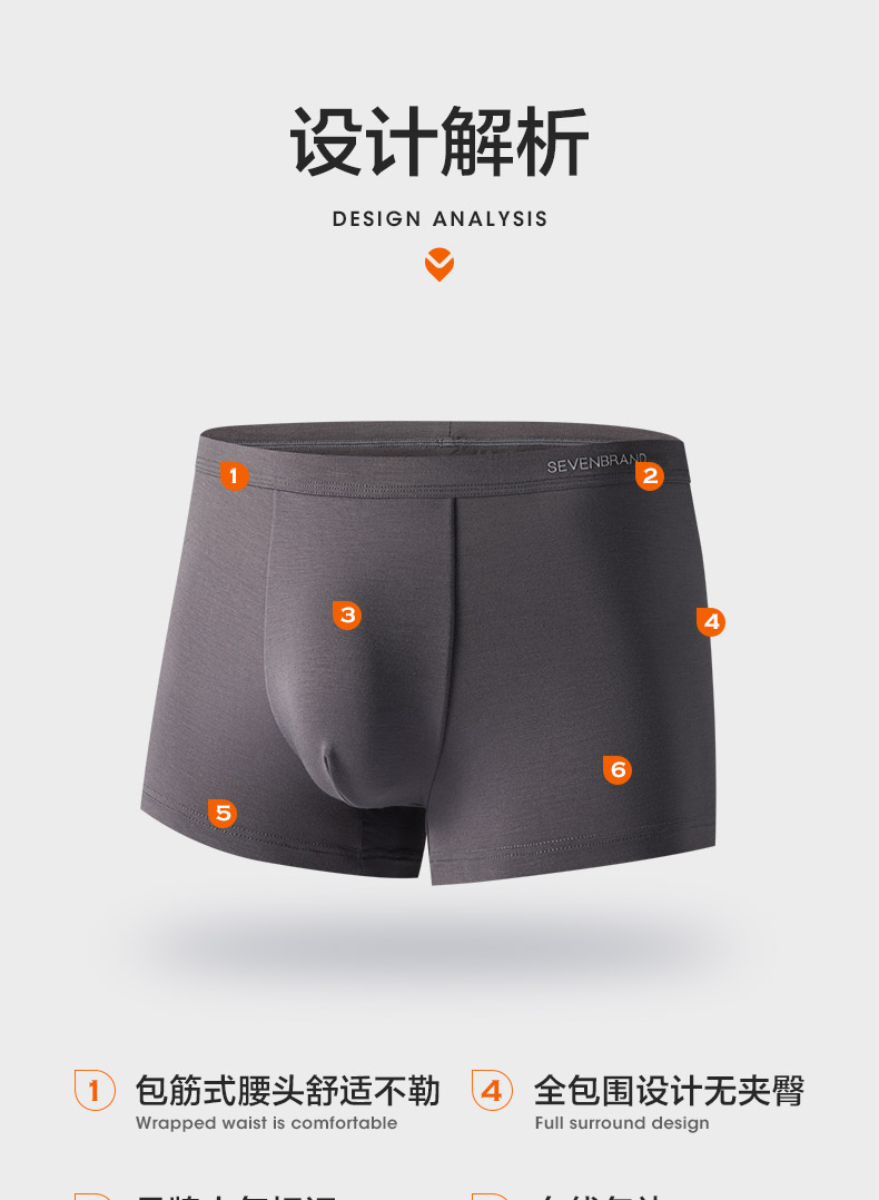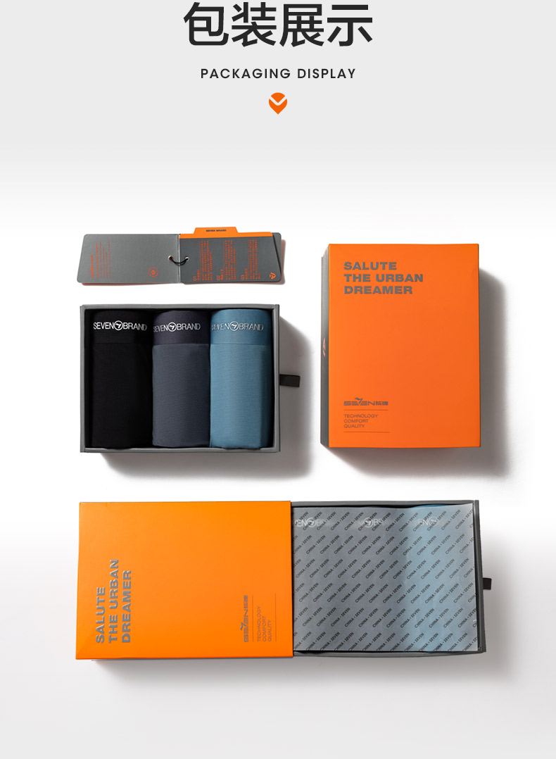 【礼盒3条装】柒牌男士内裤男平角裤抗菌透气运动休闲四角裤头男款短裤衩礼盒3条装 124F70160
