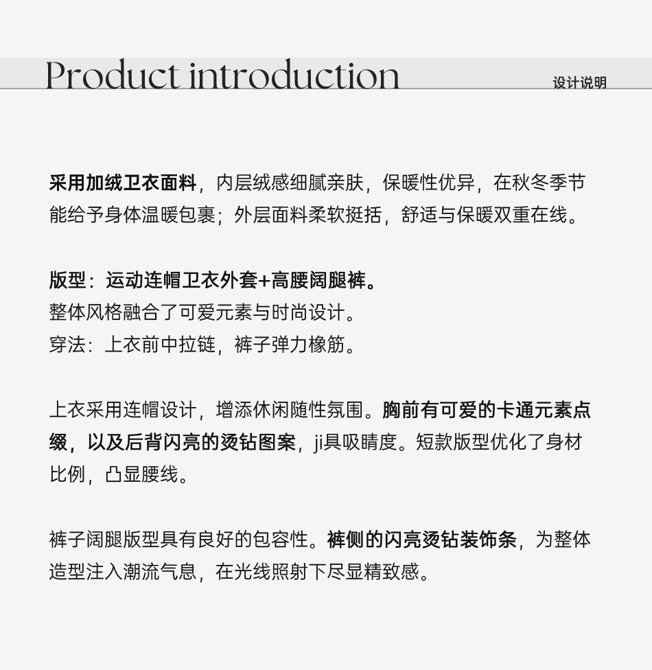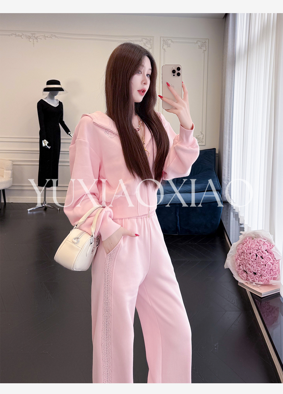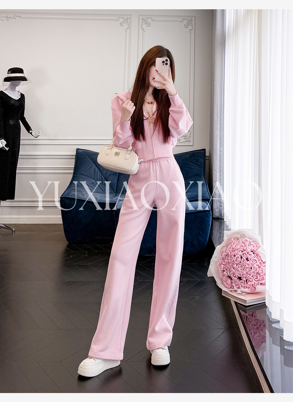 余潇潇【猫咪派对】加绒连帽双拉链卫衣外套&高腰阔腿裤运动套装