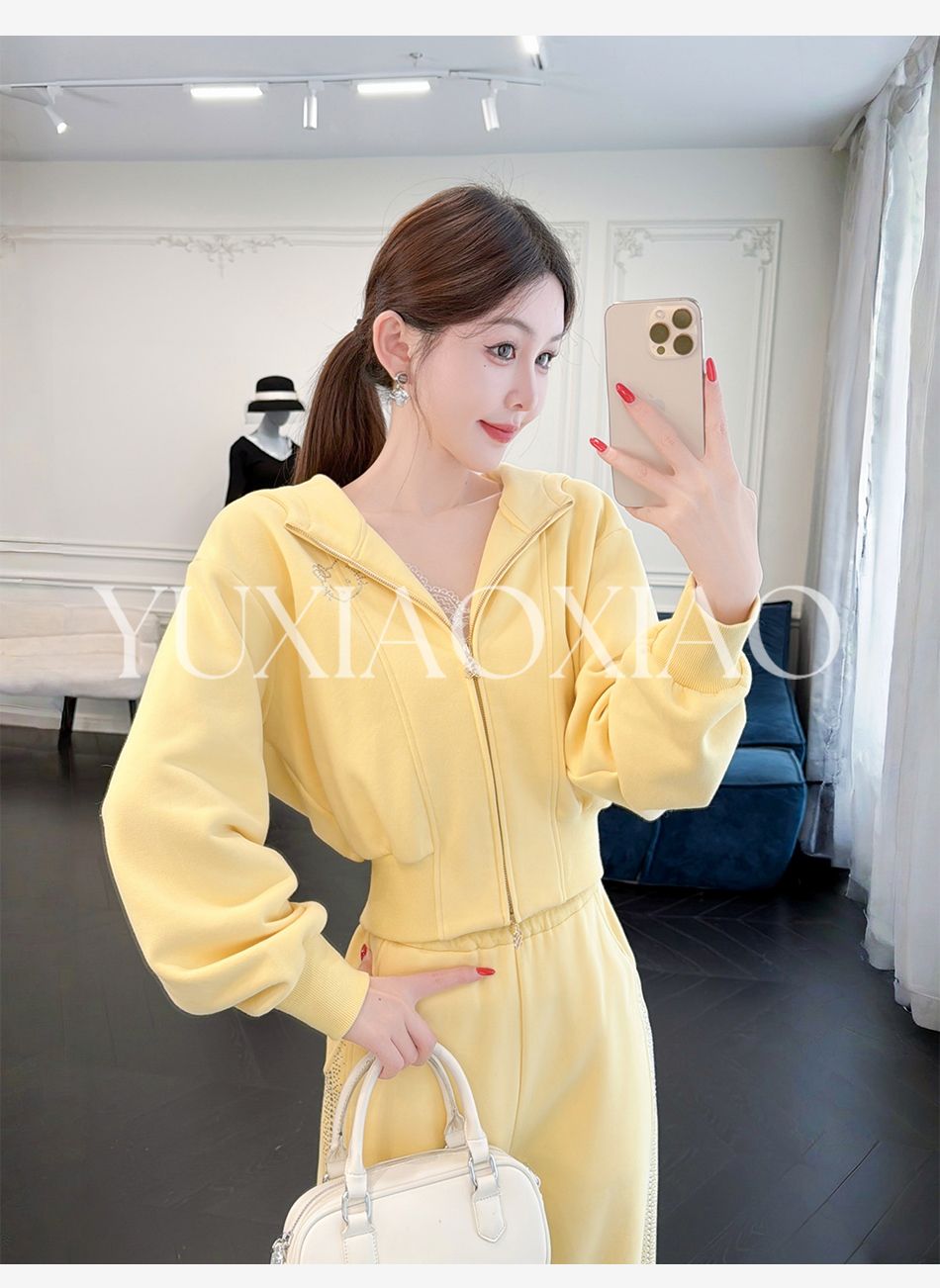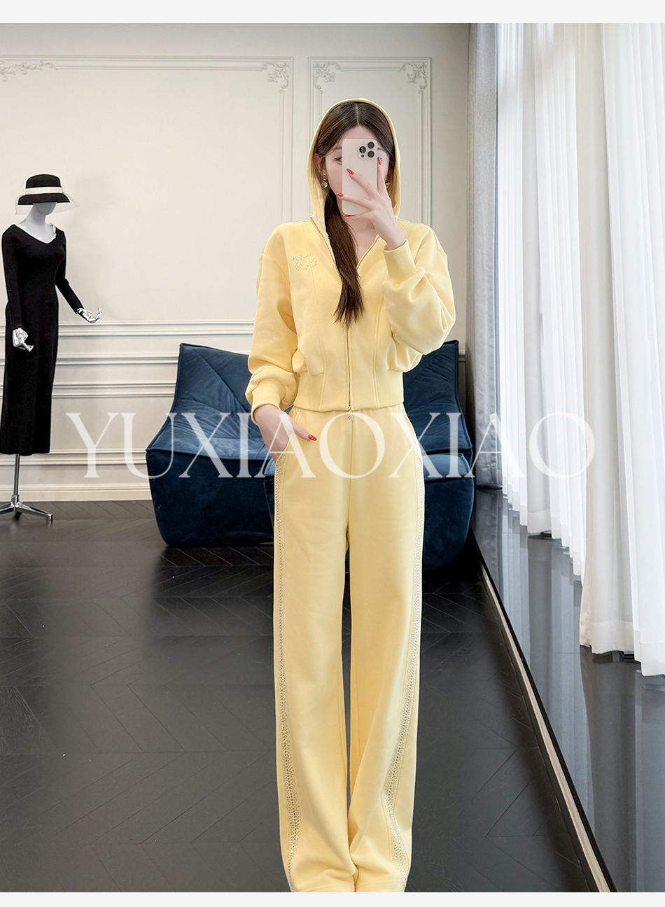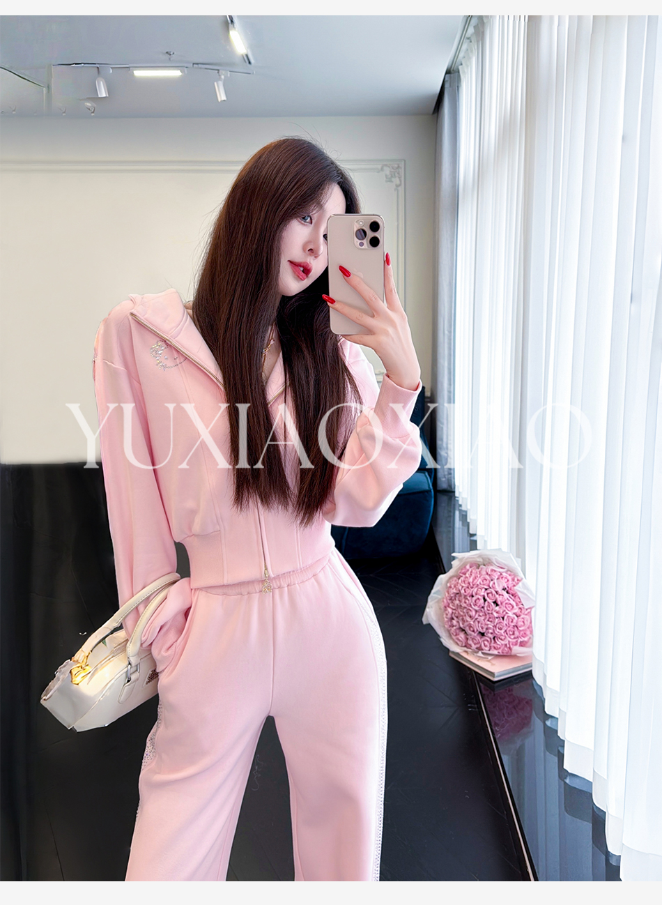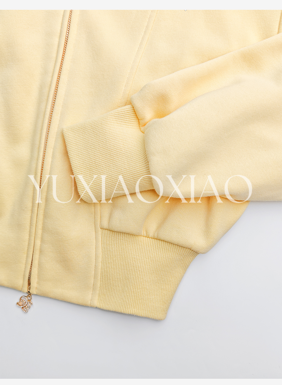余潇潇【猫咪派对】加绒连帽双拉链卫衣外套&高腰阔腿裤运动套装