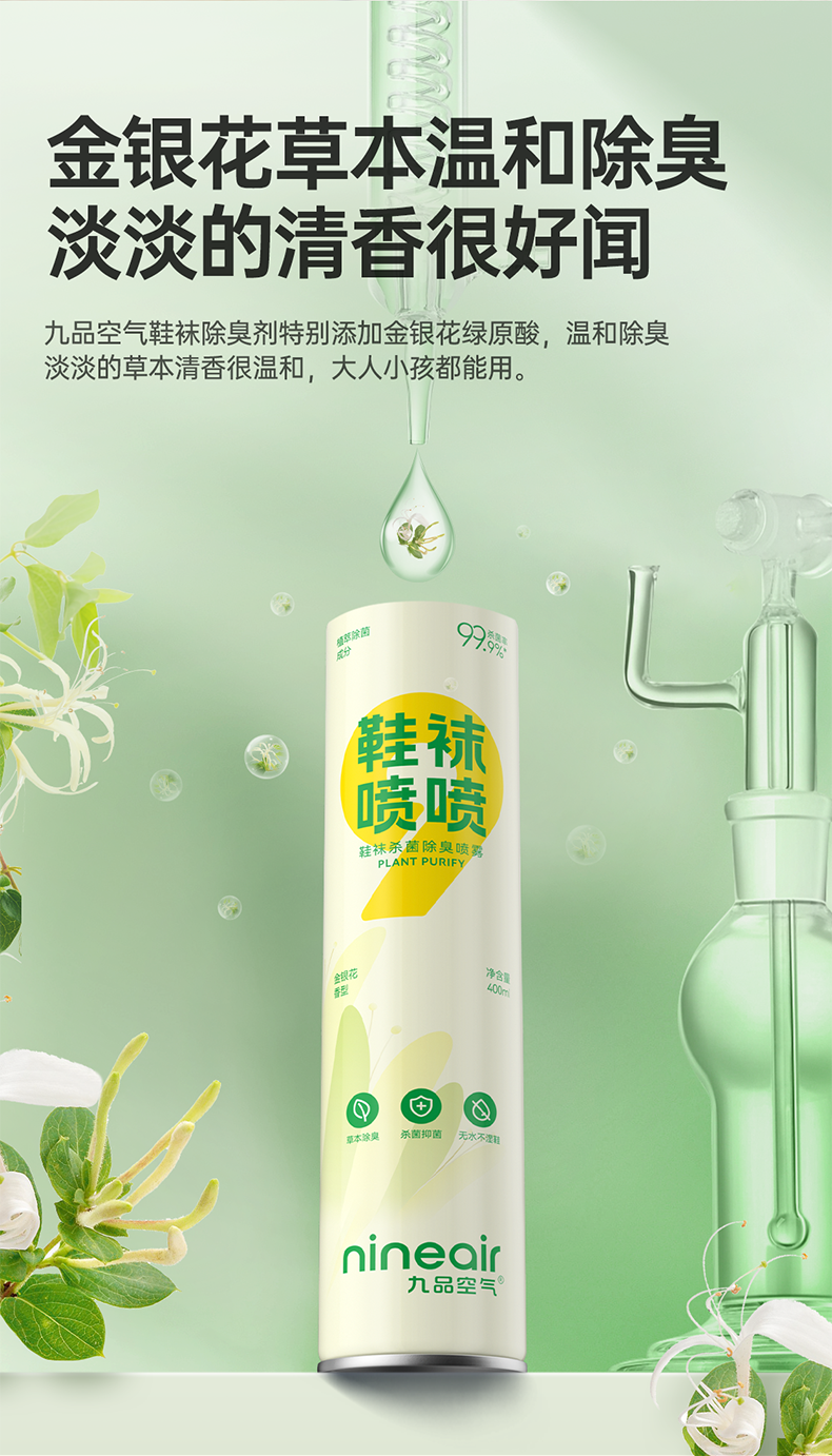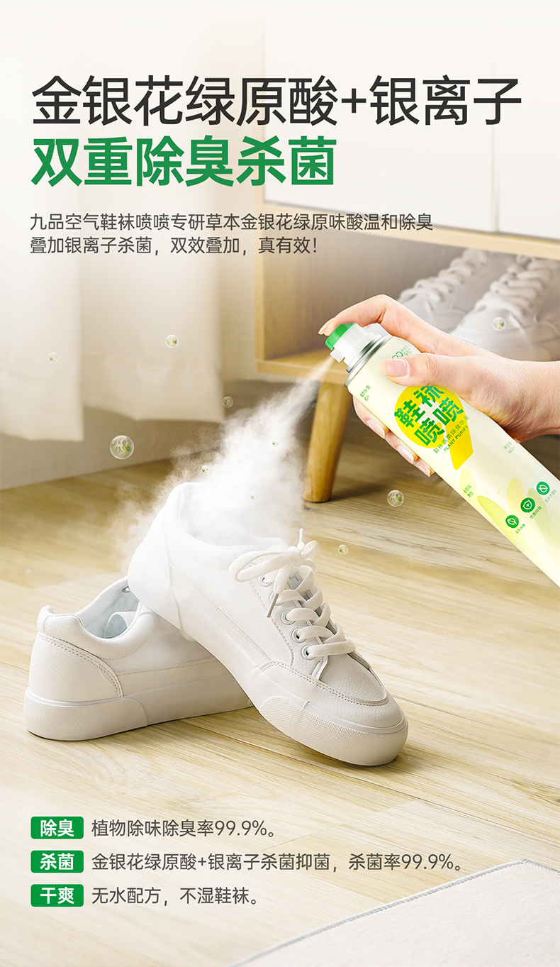 【九品空气】鞋袜喷喷 鞋袜杀菌除臭喷雾 金银花草本除臭
