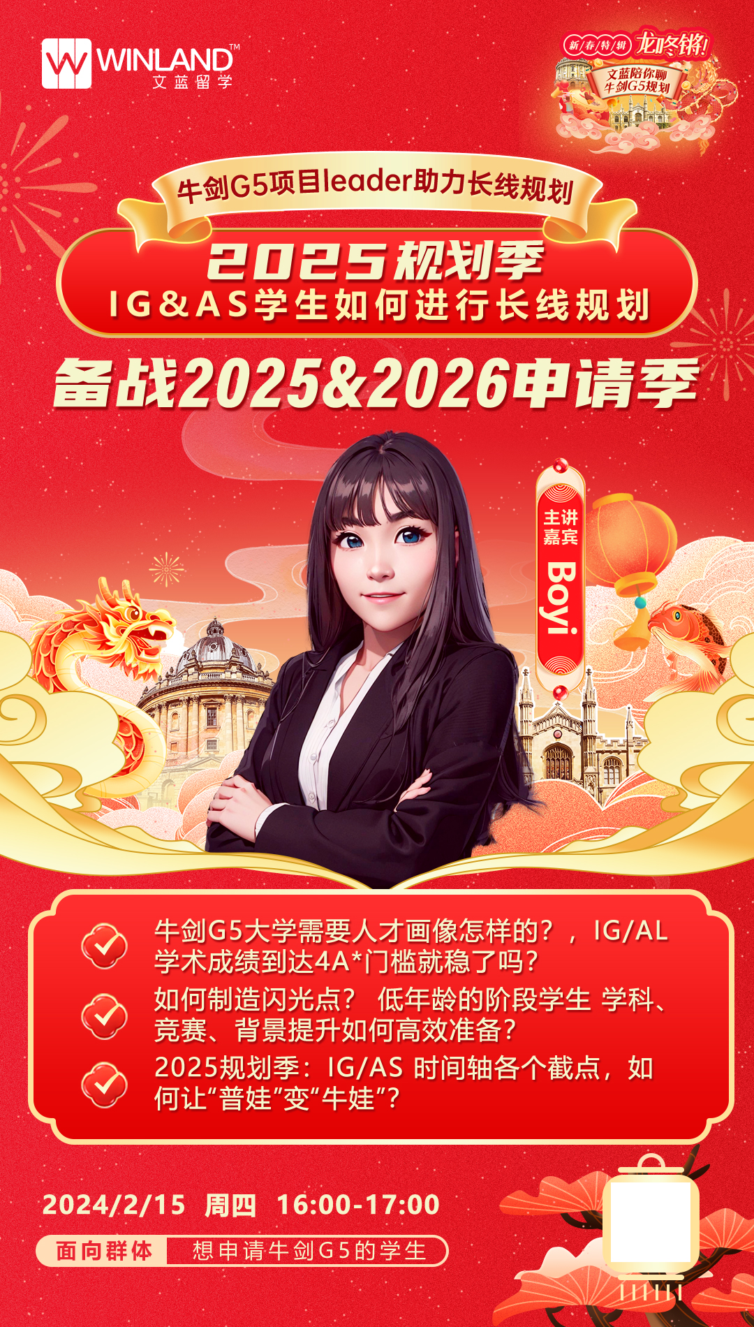 【新春牛剑G5规划系列讲座】 【牛剑G5项目leader助力长线规划】 2025规划季:IG&AS学生如何进行长线规划,备战2025&2026申请季?