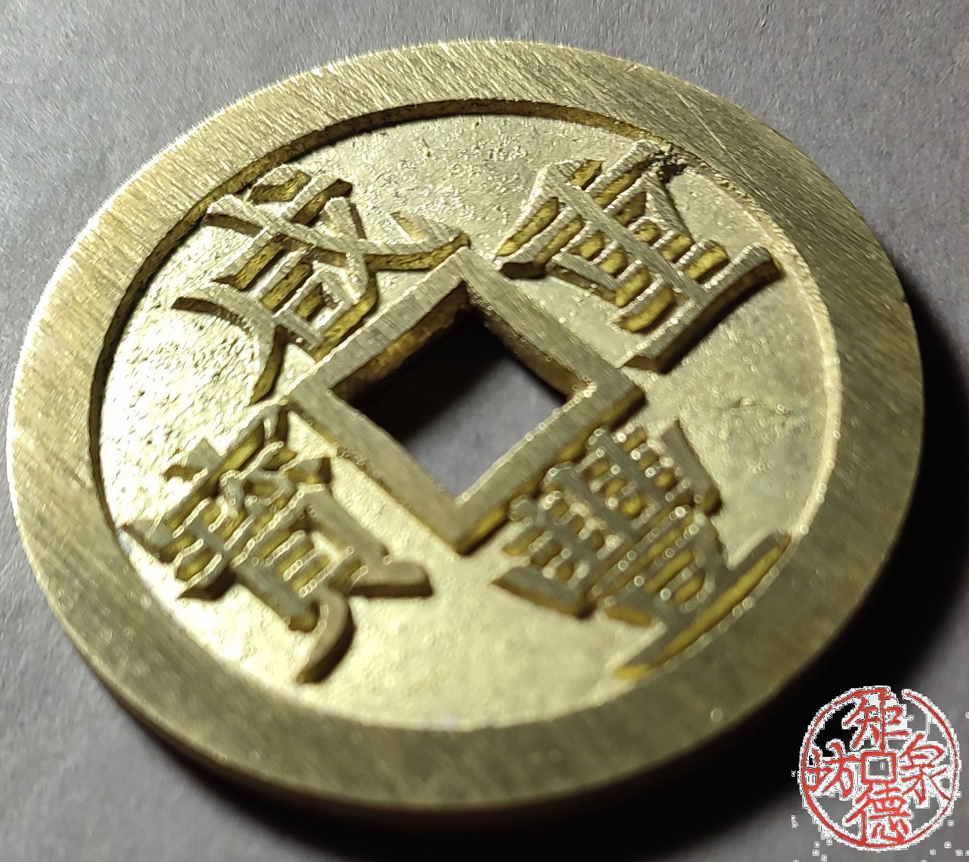 为了尽量还原古代钱币的文字神韵与时代铸造特征,每一枚都进行手工修刀、打磨。会有打磨痕迹、刻刀痕迹,铸造气孔或者微小沙眼,这正是手工与机器制作的区别,并非瑕疵。