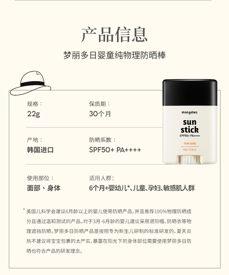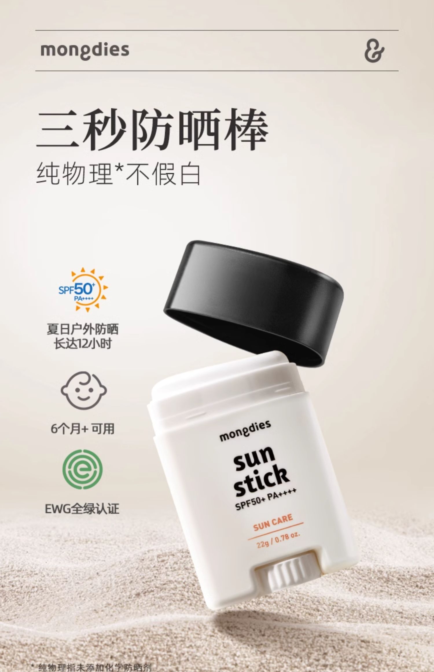 Mongdies梦丽多日婴儿童纯物理3秒防晒棒固体防晒霜四季可用SPF50