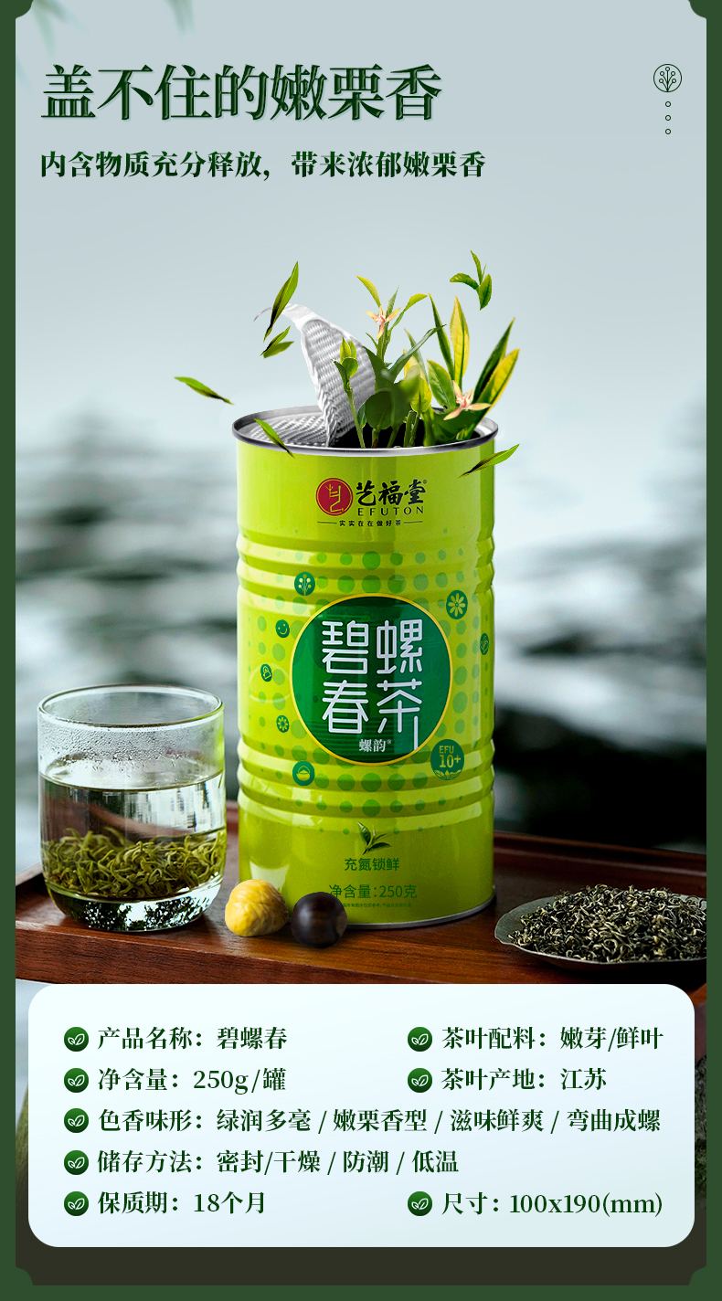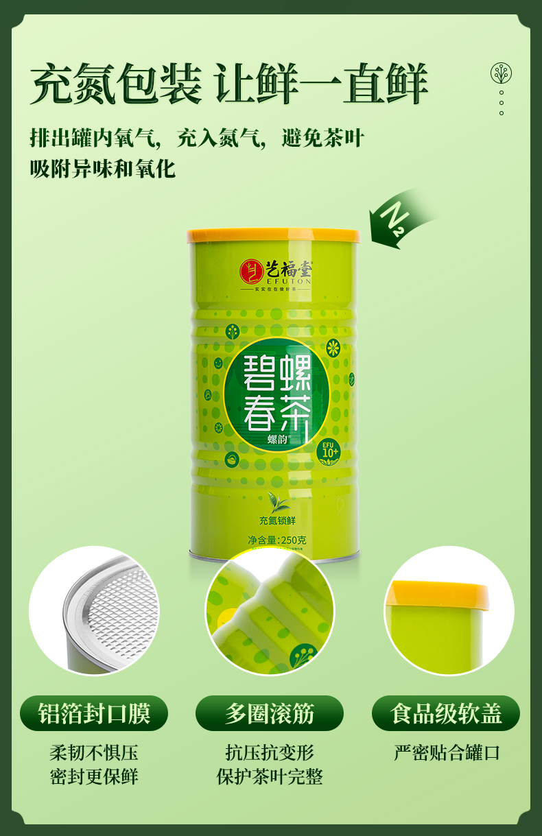 【下单减11,第2件半价,第3件0元】艺福堂 正宗江苏原产 明前碧螺春 螺韵EFU10+ 2025新茶 250g/罐