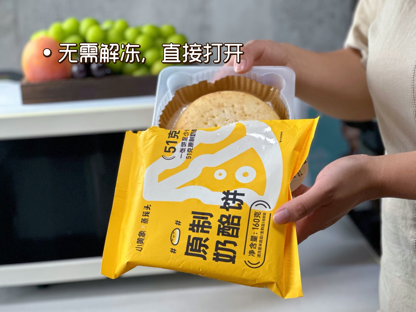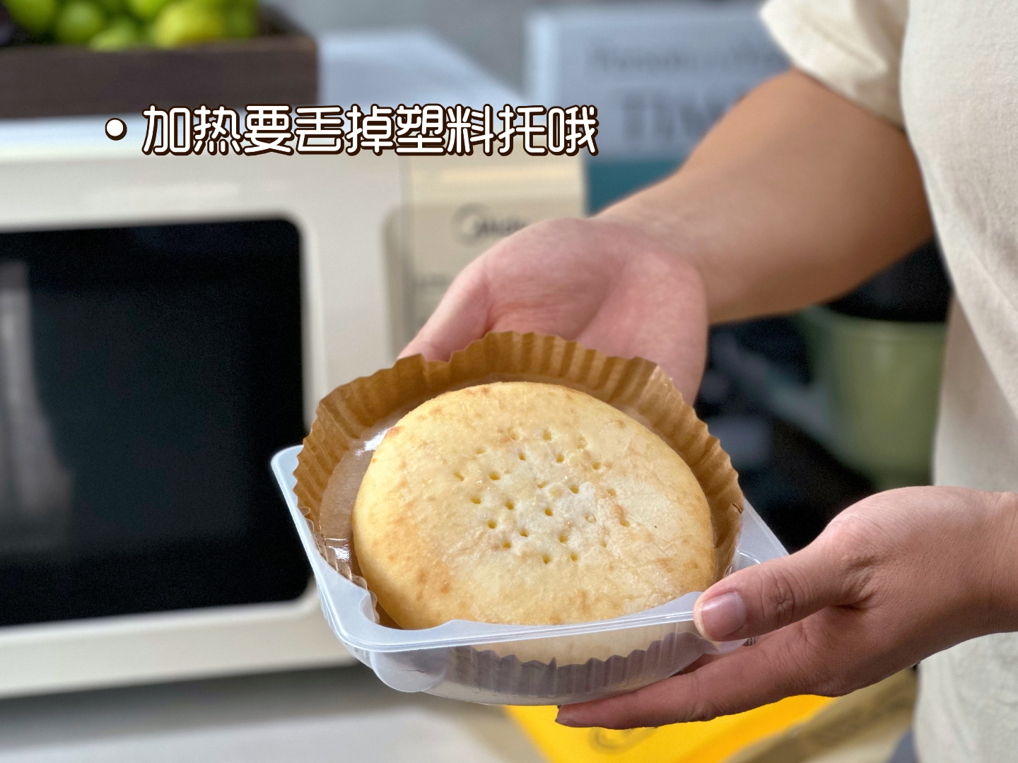 想要饼皮松软一些的朋友 ,可以直接用微波炉加热,不用提前解冻,高火微波3分钟左右即可。