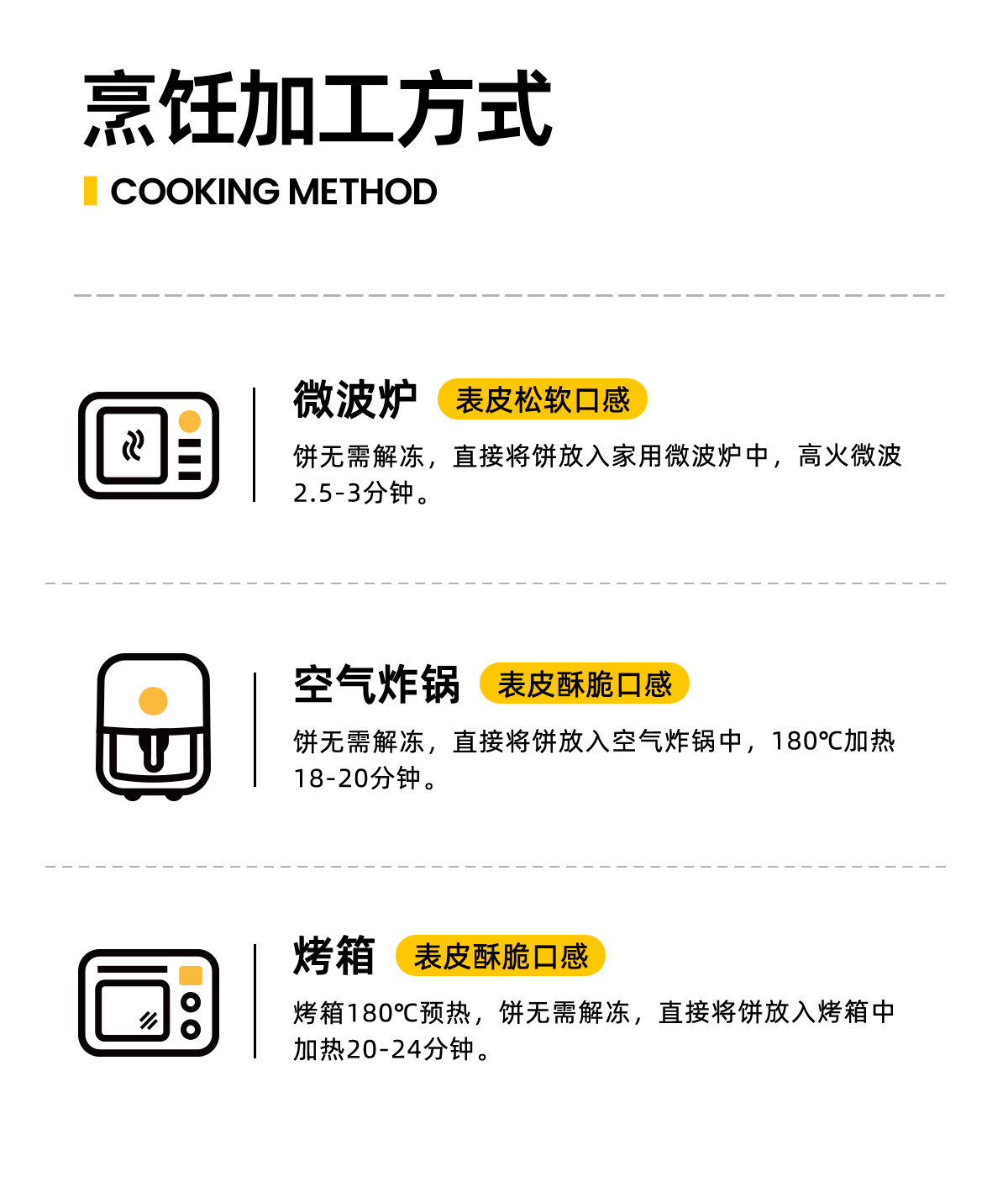一样是180度预热,无需解冻,180度加热18-20分钟即可。