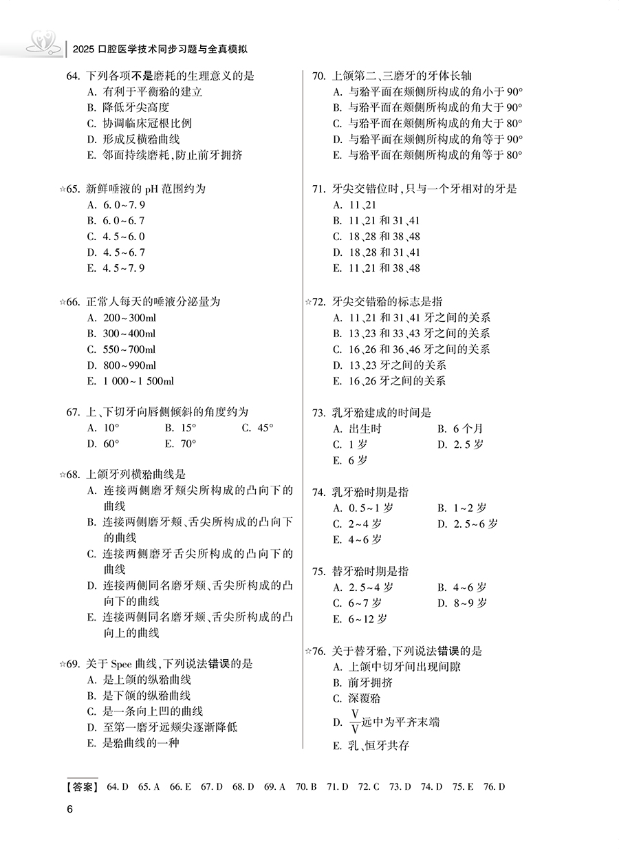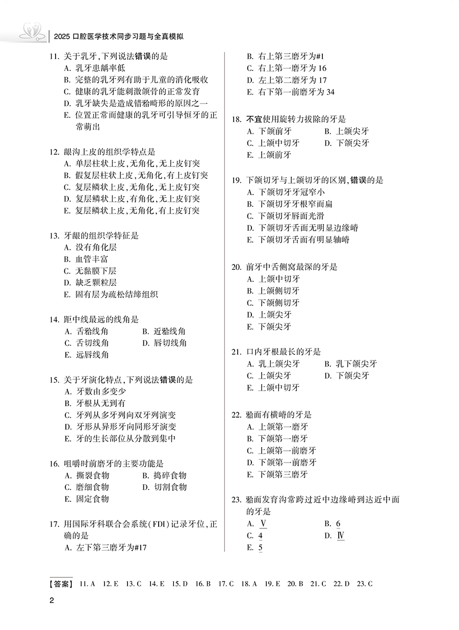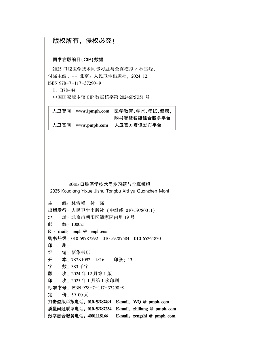 书名:2025口腔医学技术同步习题与全真模拟