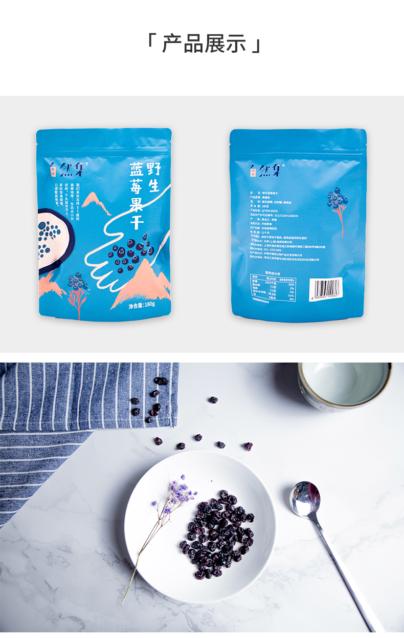 考虑到食用的方便性,自然集的野生蓝莓干继续沿用一惯的包装,每袋180克