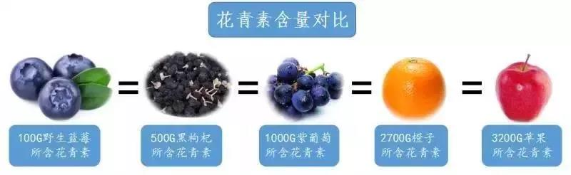 野生蓝莓的营养价值比人工种植蓝莓高得多。100克野生蓝莓的花青素含量是人工种植蓝莓的5倍,相当于500克黑枸杞所含的花青素,1000克紫葡萄的花青素,是自然界中花青素含量最高的果实,被誉为极地浆果中的不老灵丹。