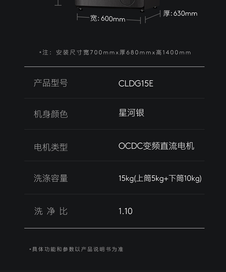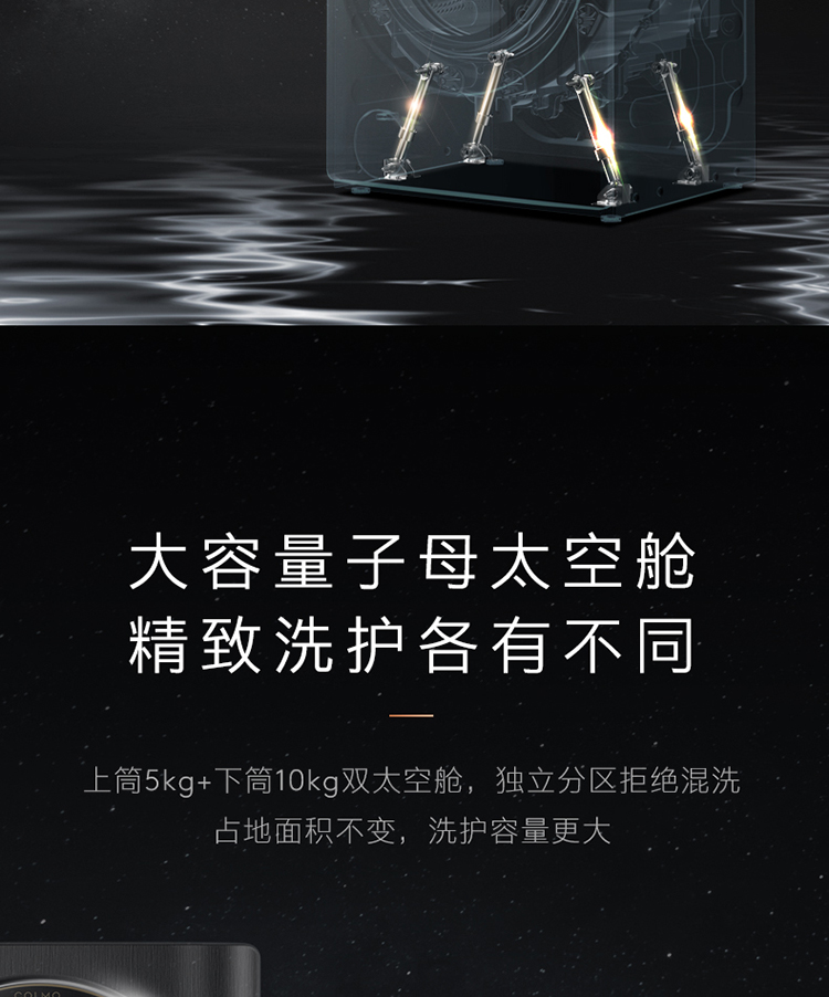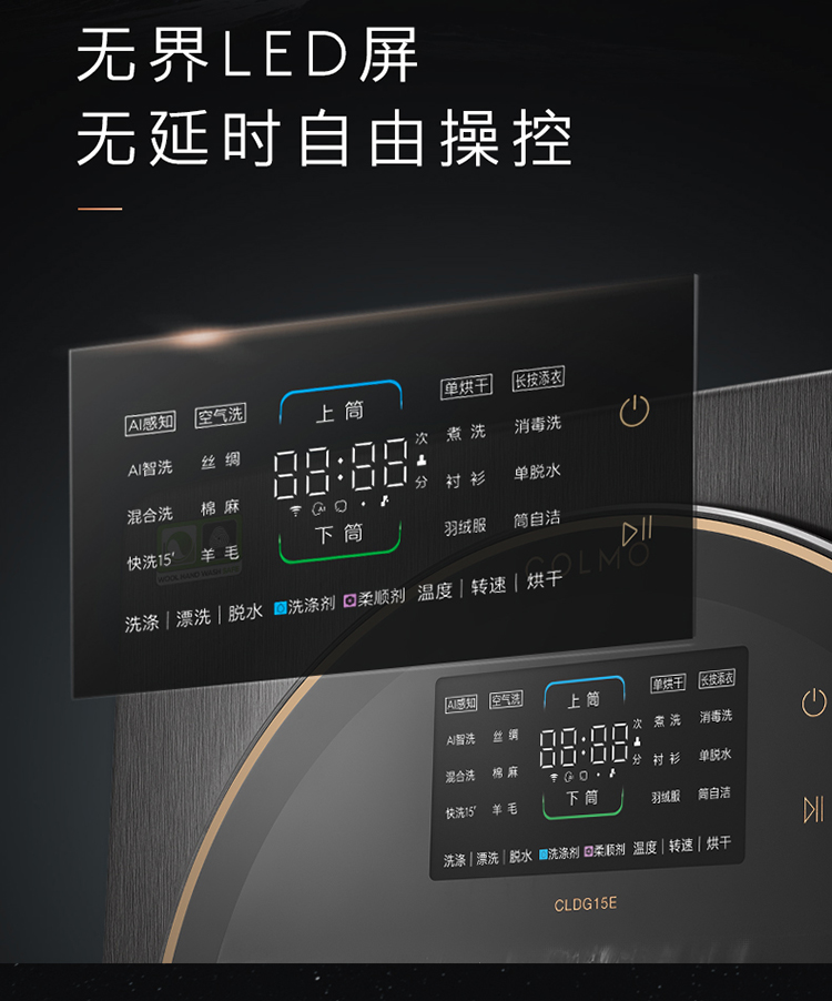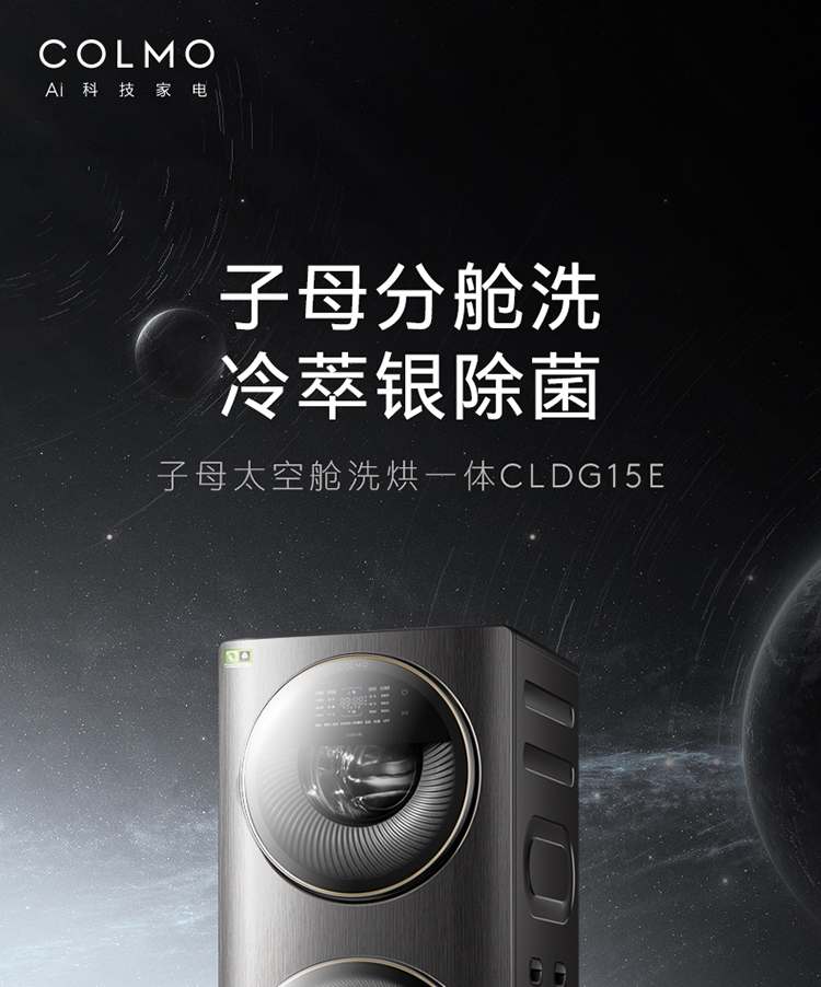 COLMO 分区洗衣机 滚筒全自动 洗烘一体机 15公斤大容量 智能投放 智能家电 太空舱系列 线下同款CLDG15E