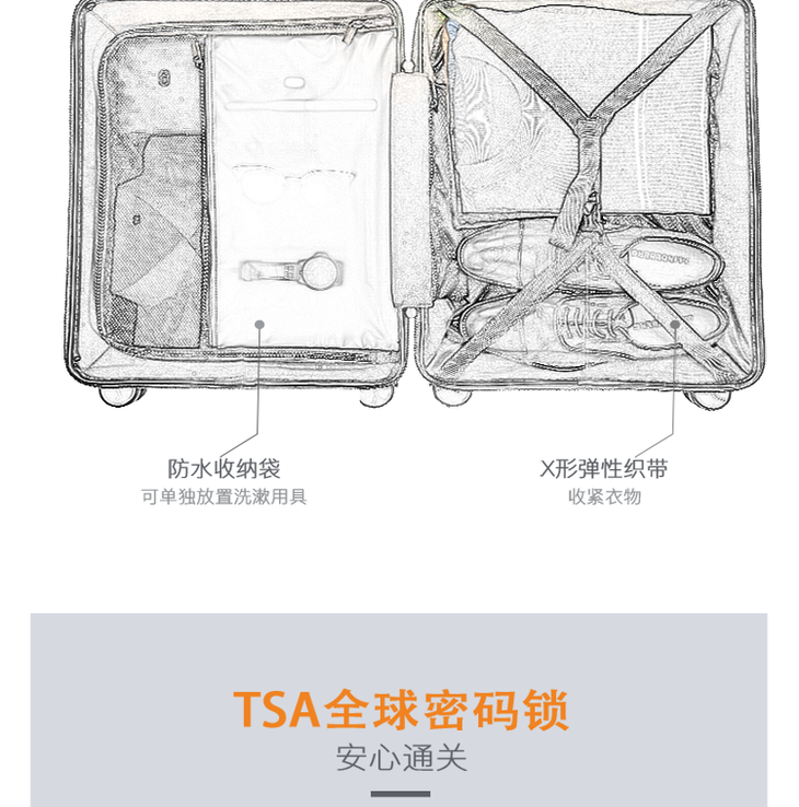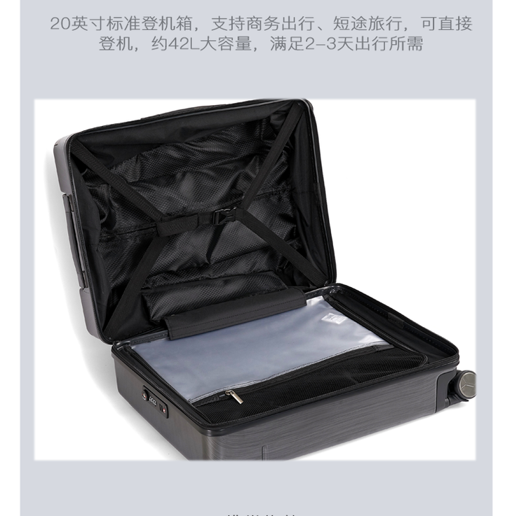 ODMALL 商务拉杆箱 金属质感拉丝纹理时尚商务行李箱 静音万向轮旅行箱20寸登机箱