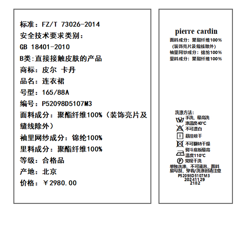 皮尔卡丹女装春季新款简约通勤气质修身连衣裙P2130E2123B0