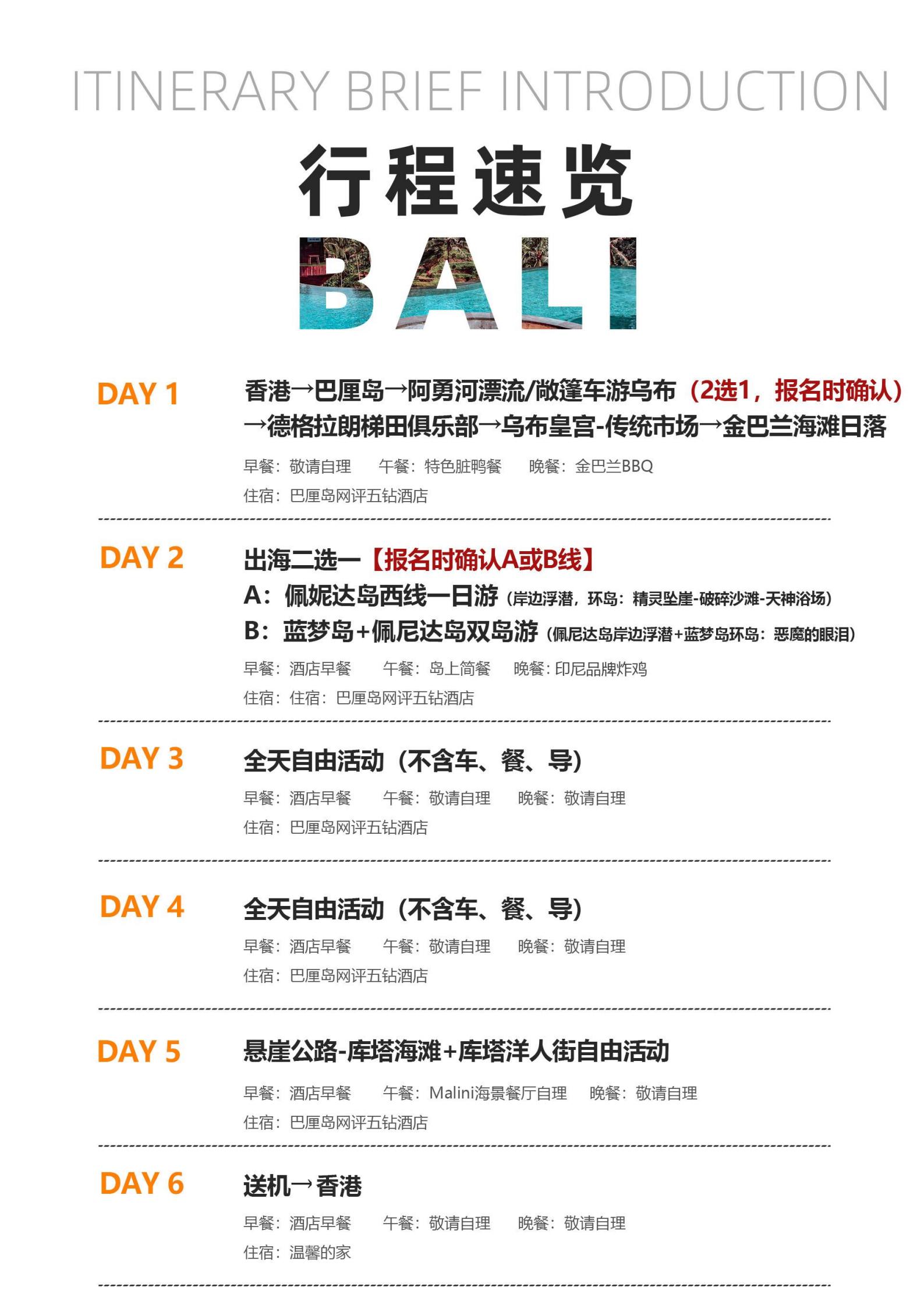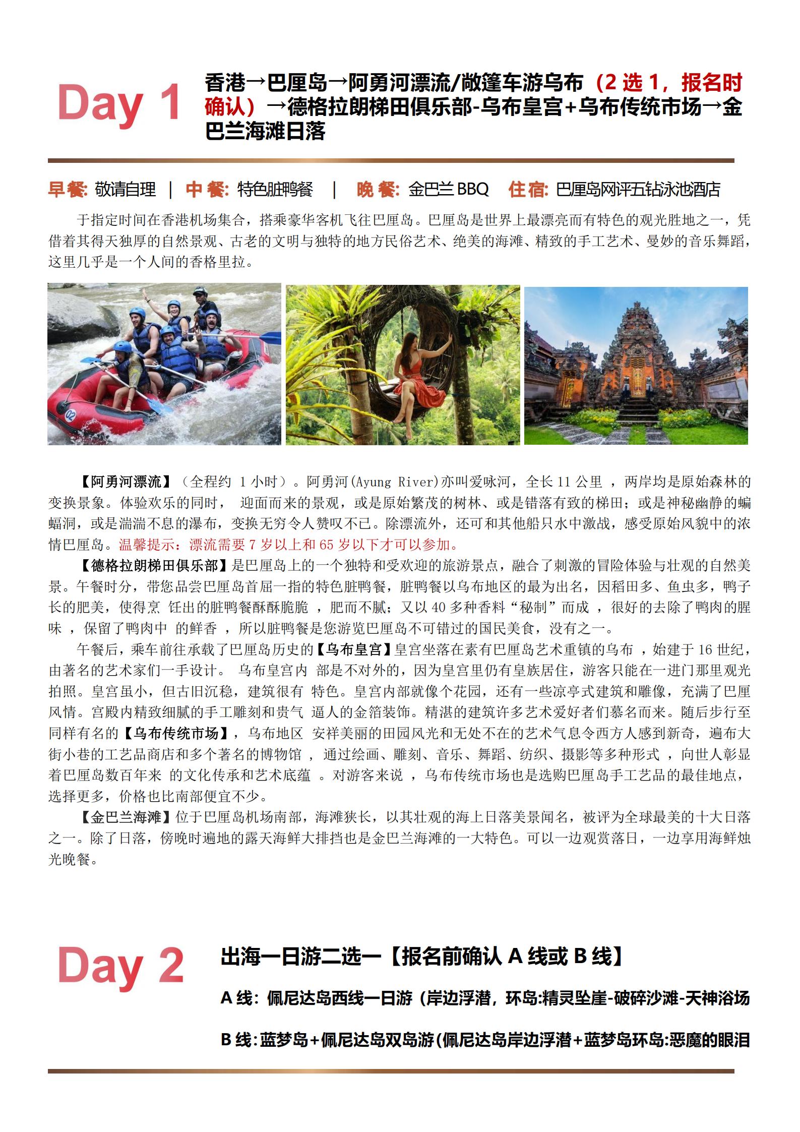 【五一惠游】<巴厘岛6天5晚半自助游>2天自由活动、阿勇河漂流/敞篷车游乌布(2选1)、德格拉朗梯田俱乐部、乌布皇宫、金巴兰海滩日落、佩尼达岛西线/蓝梦岛+佩尼达岛(2选1)、乌鲁瓦图情人崖、库塔海滩