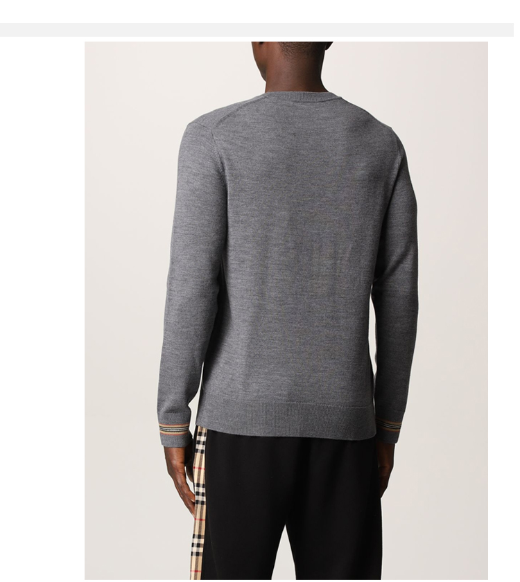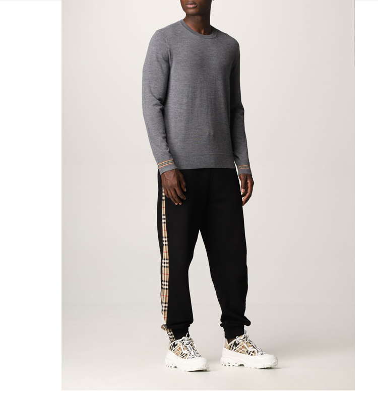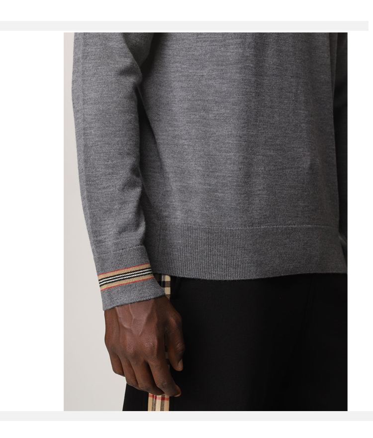【二】BURBERRY 博柏利 男士 标志性条纹装饰羊毛针织衫 灰色 8033203 A1199