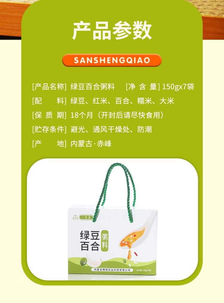 内蒙古翁牛特旗三生荞绿豆百合粥料150g*7袋/箱
