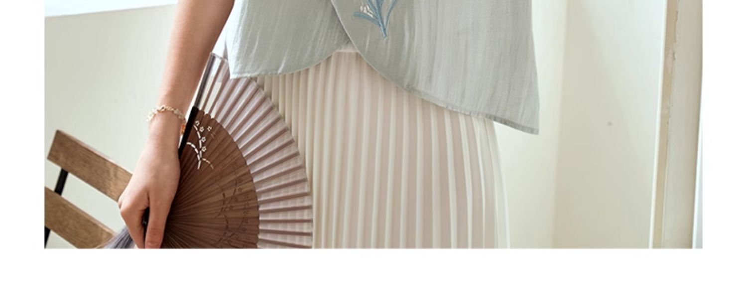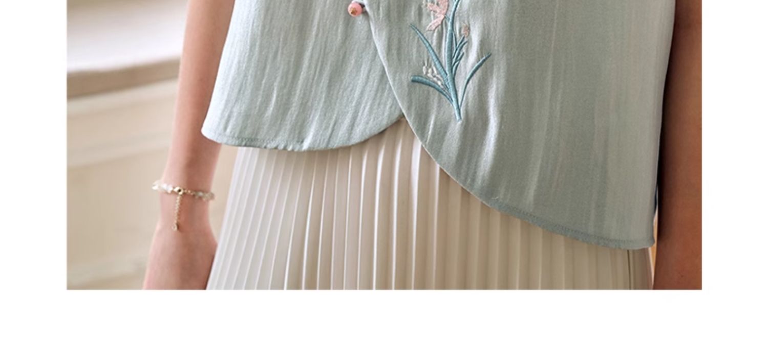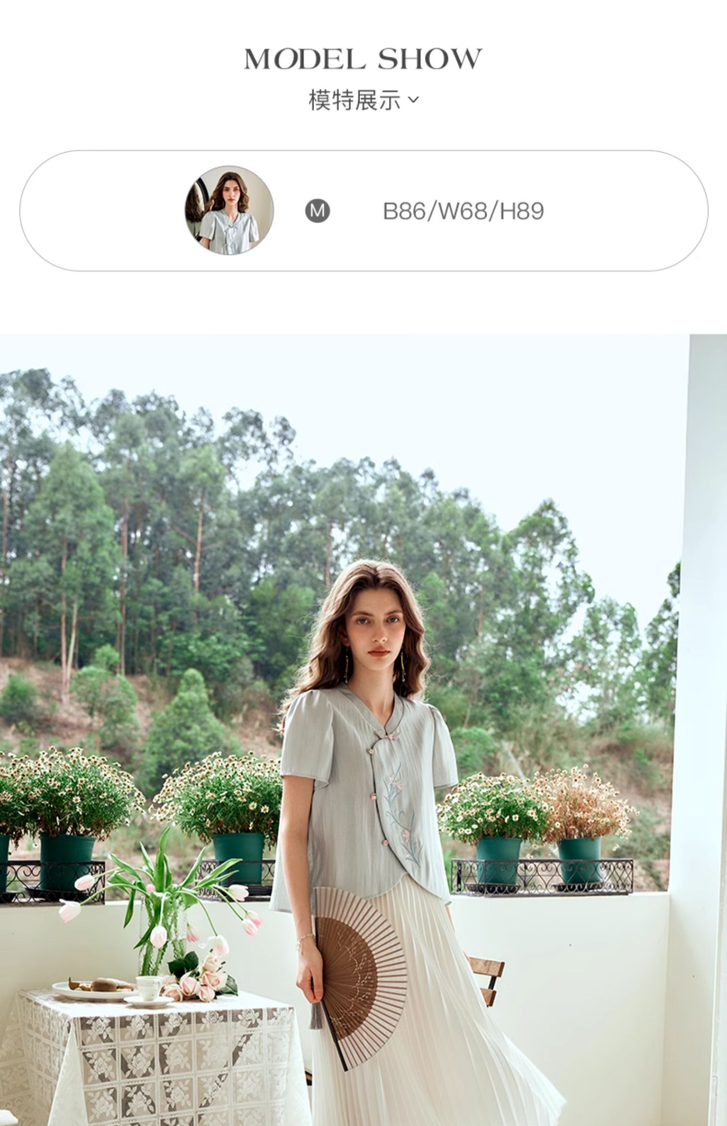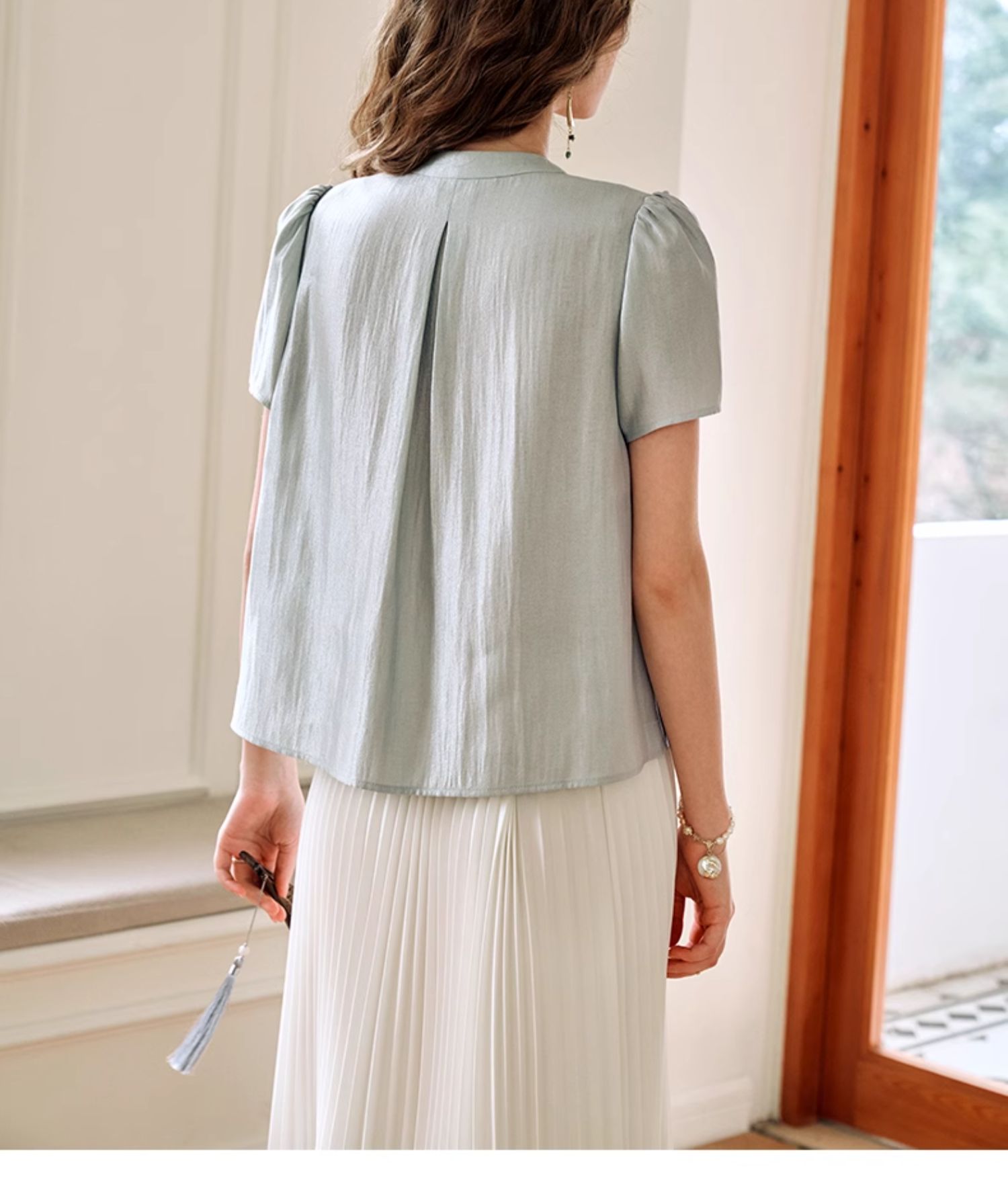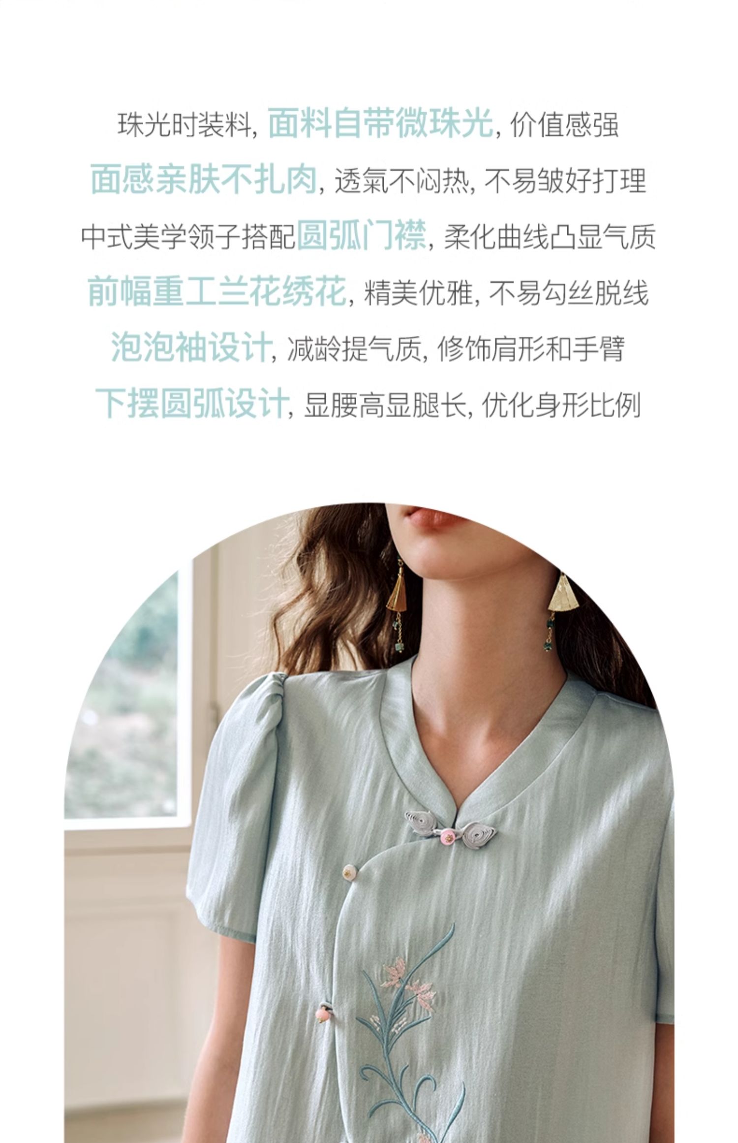 OLrain欧芮儿新中式国风上衣女夏季新款薄荷曼波色雪纺衫绣花衬衫