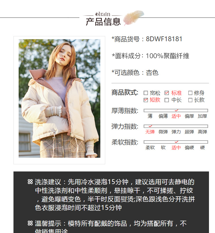 “精致”是欧芮儿olrain品牌文化的核心,欧芮儿认为,精致的女人,不但要外在动人,更要内在迷人,内外兼修,有魅力、有气质、有内涵,自信而不自傲,优雅而不矫揉,自有万种风情而不轻浮,更不故作矜持。