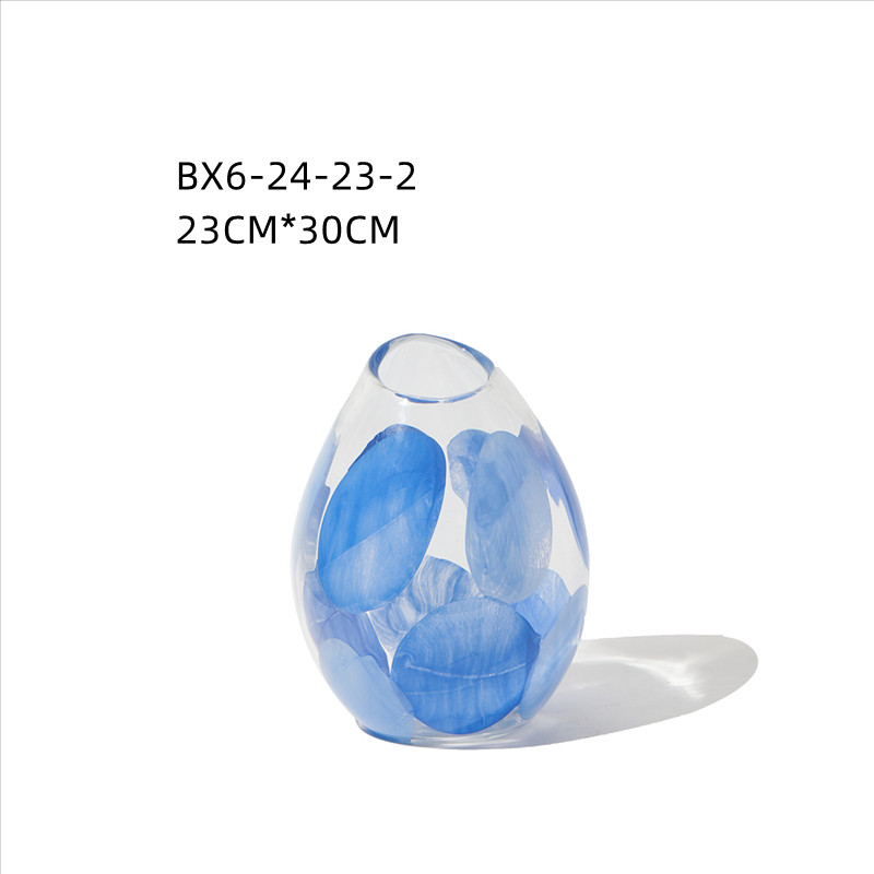 法式中古肌理不规则渐变玻璃插花瓶摆件家居客厅餐桌玄关创意装饰
