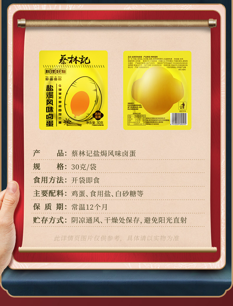 【满99-50 满199-100】蔡林记盐焗卤蛋30g*5个