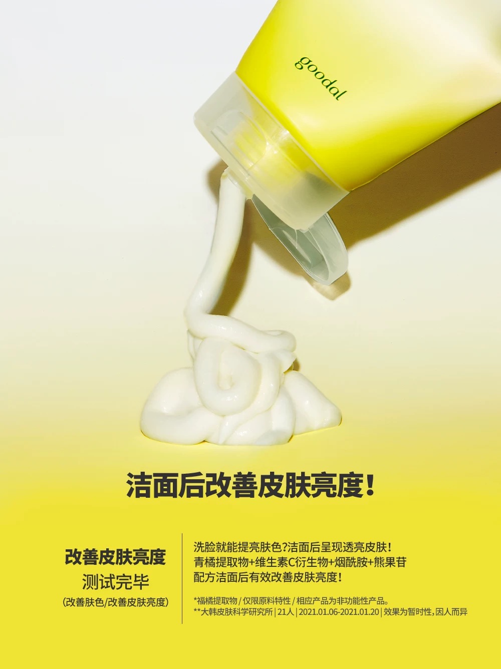 韩国果达儿goodal全系列青橘维他命vc 洁面泡沫乳清洁洗面奶/精华爽肤水/精华面膜/湿敷棉片/精华面霜/眼膜 淡斑美白液祛斑去黄提亮肤色补水保湿