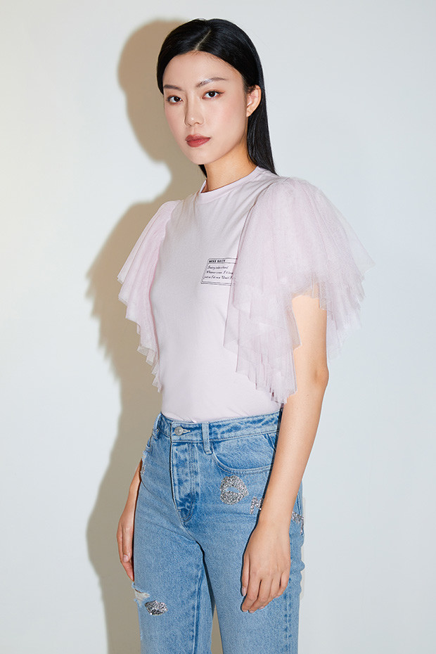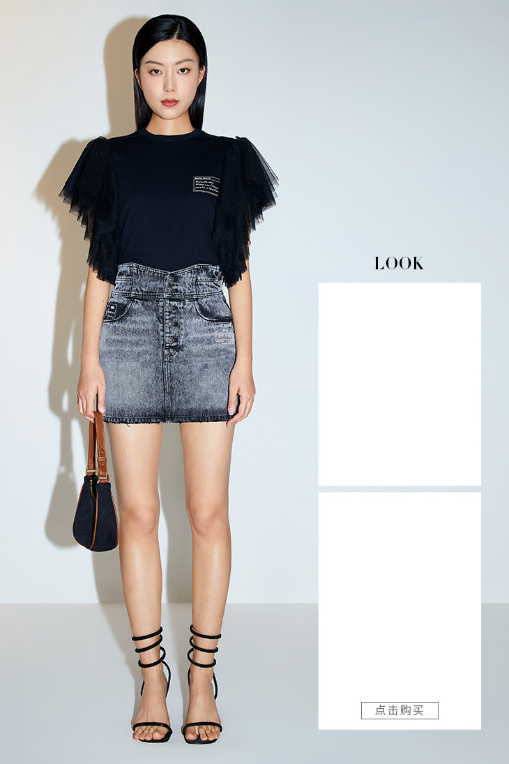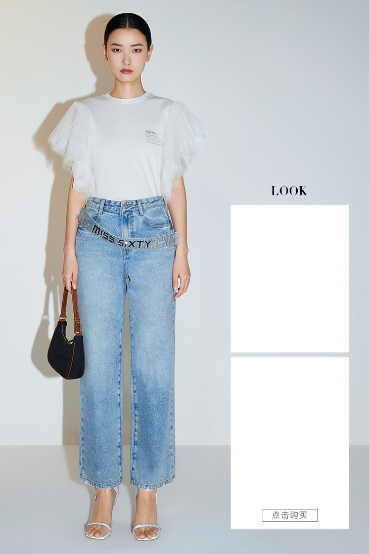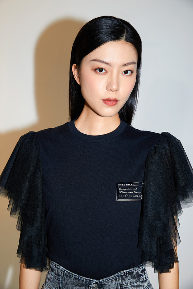 Miss Sixty2021春季新款T恤女纯棉字母印花网纱拼接6N1SJ0590000