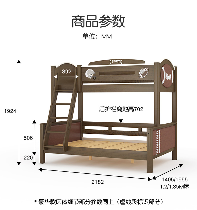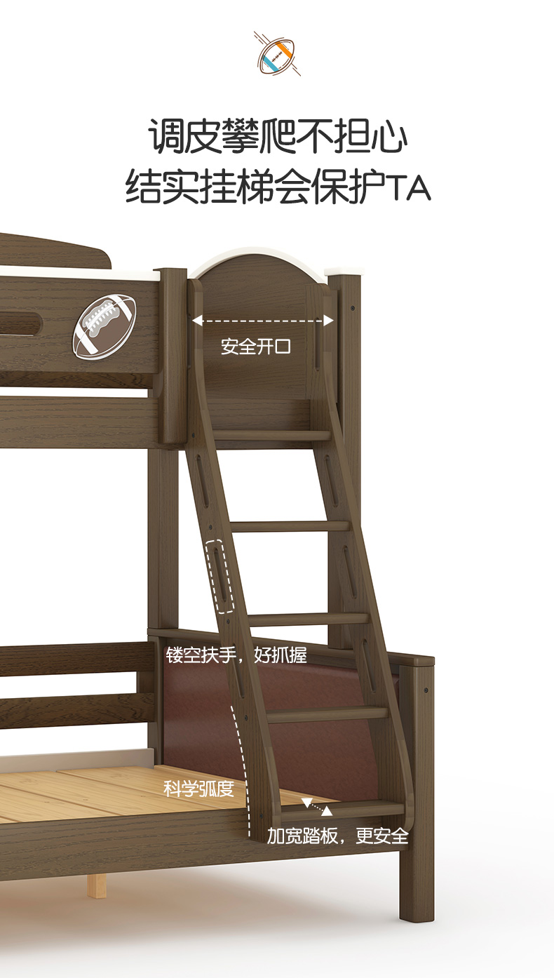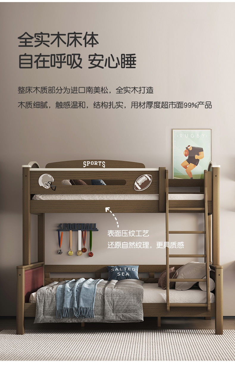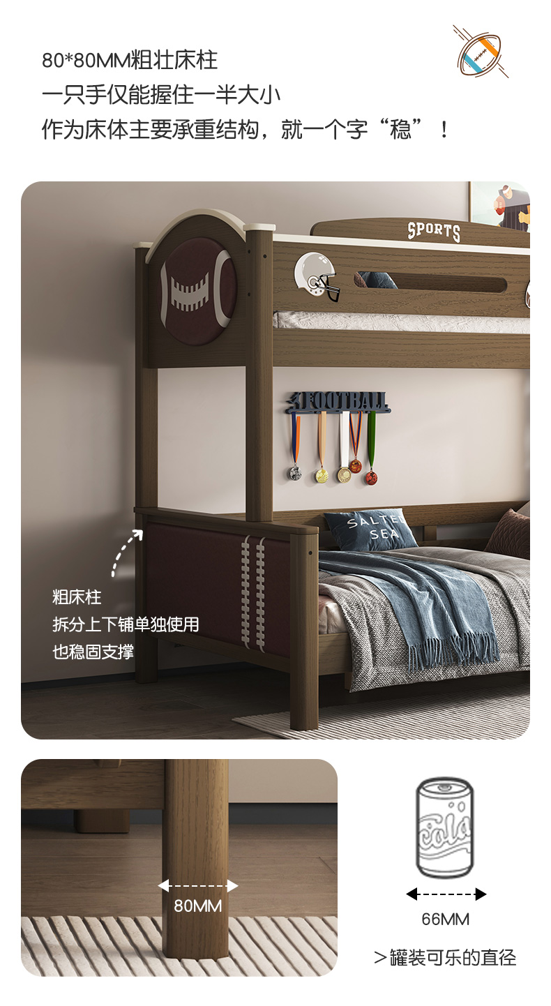 喜梦宝双层床上下铺双层床儿童全实木高低子母床小户型橄榄球系列