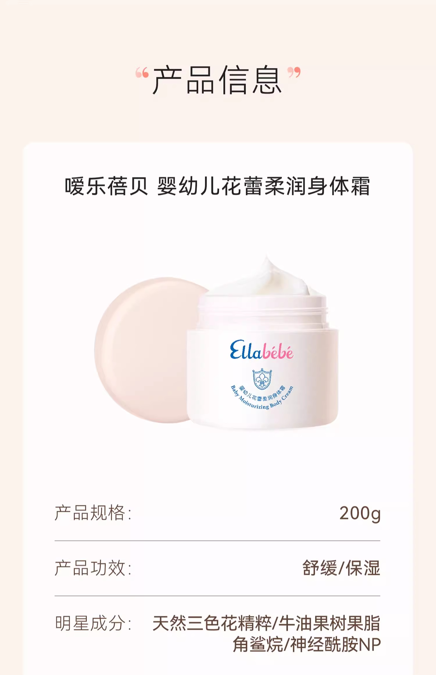 Ellabebe嗳乐蓓贝儿童身体霜换季保湿滋润润肤乳清爽补水护肤/ALB-798527