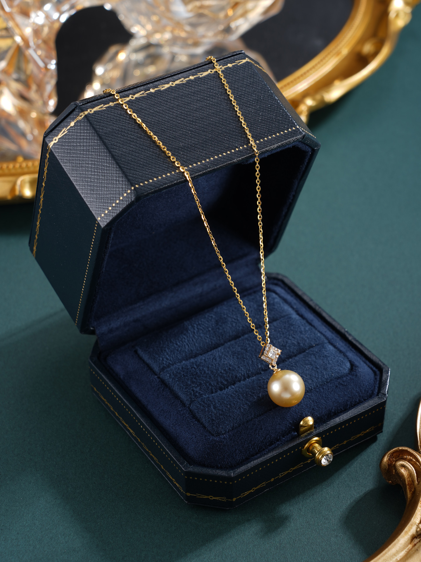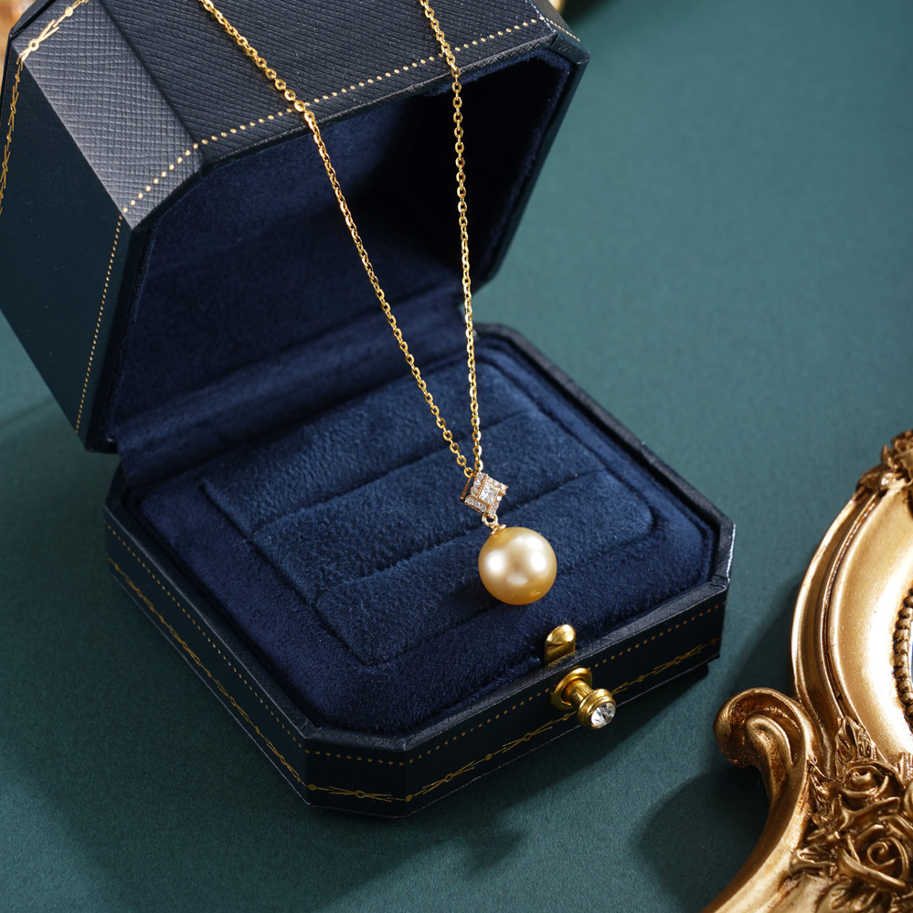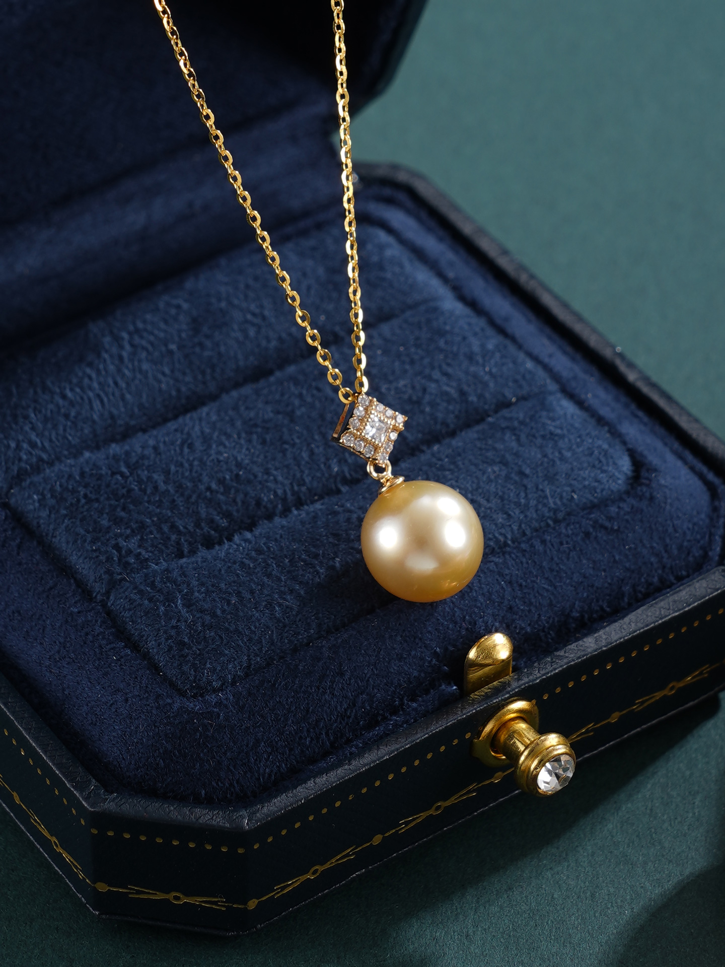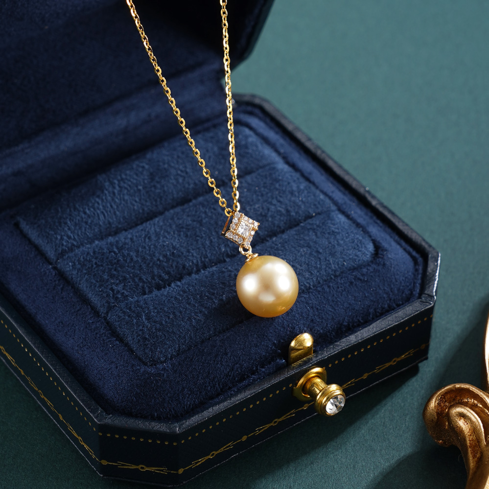 子佩集【鎏光秘语】G18K珍珠惜王妃吊坠【KP25025】10.5mm珠海水珠金色四芒星方块镀金(不含链)2601