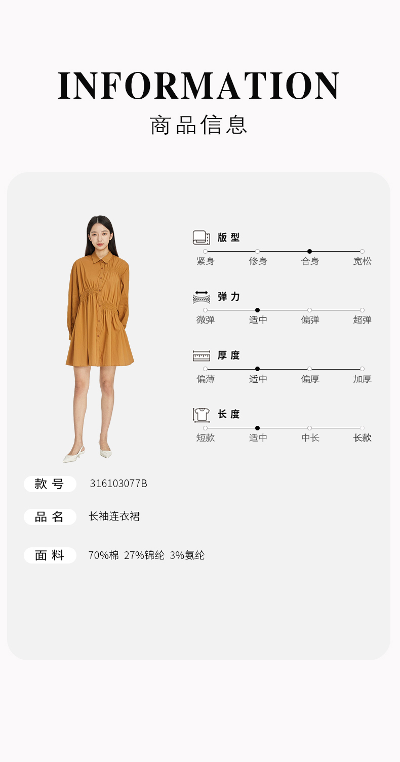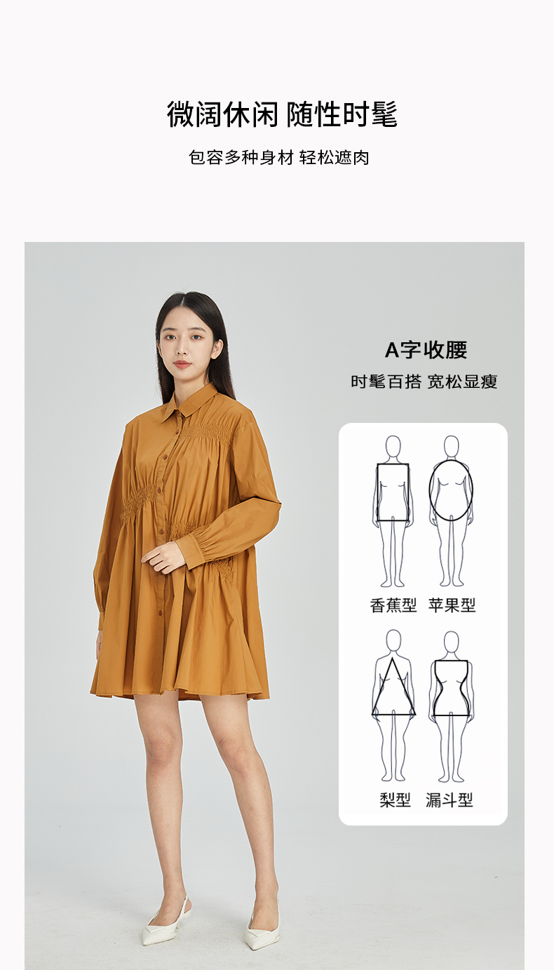 NUTS商场同款春秋季纯色简约气质休闲宽松长袖连衣裙女316103077B