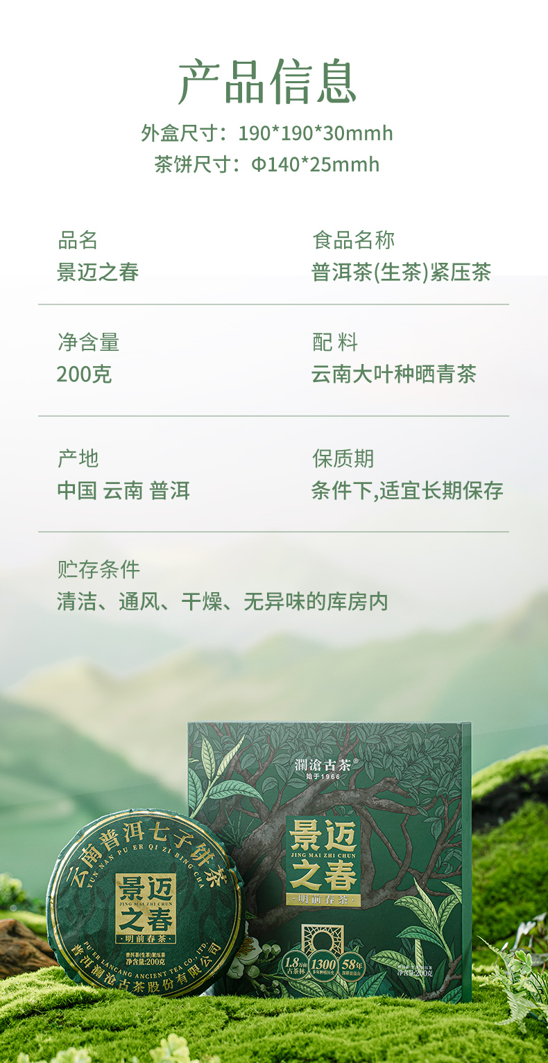澜沧古茶2024年景迈之春普洱茶生茶小饼200g