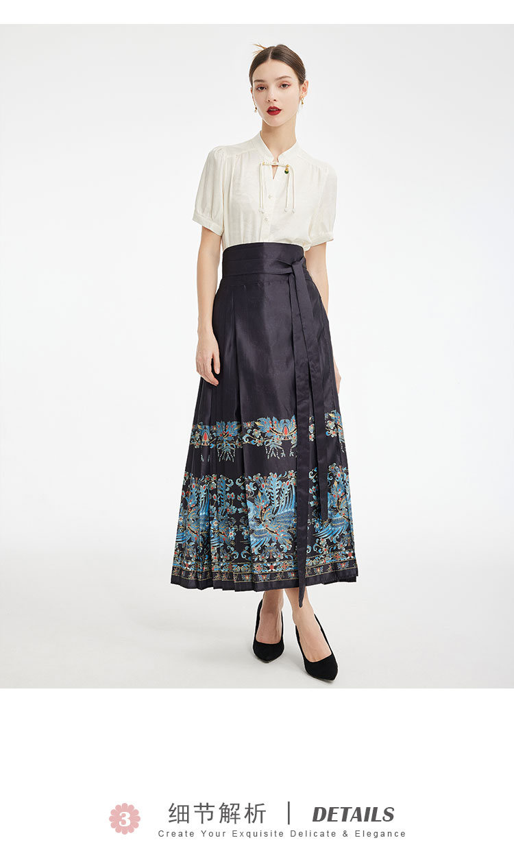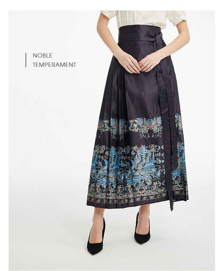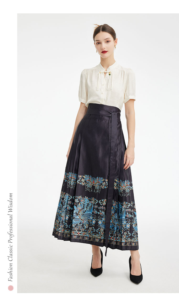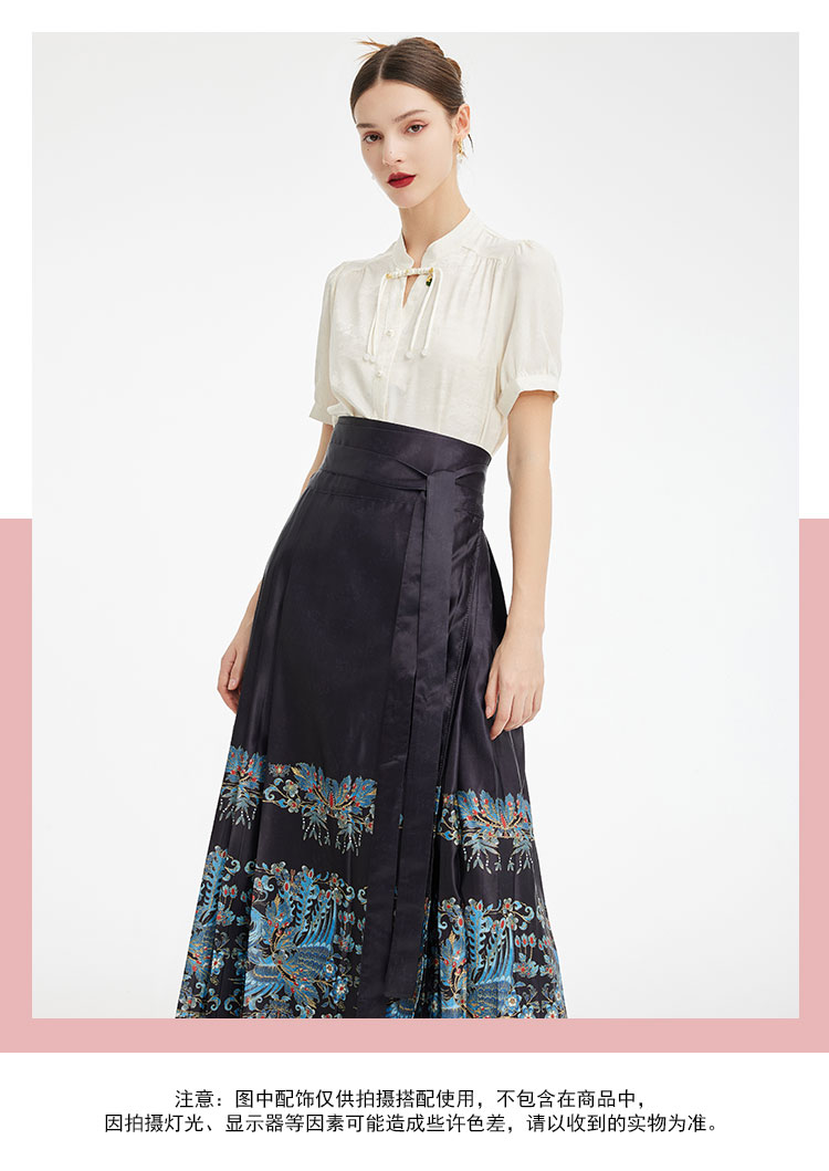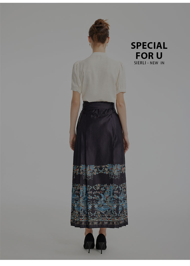 PF512斯尔丽2024新款复古印花马面裙新中式半裙高腰节长款半截裙