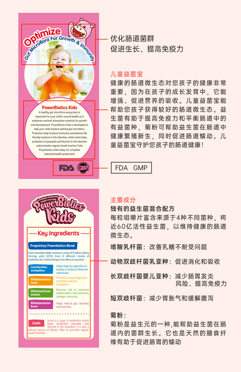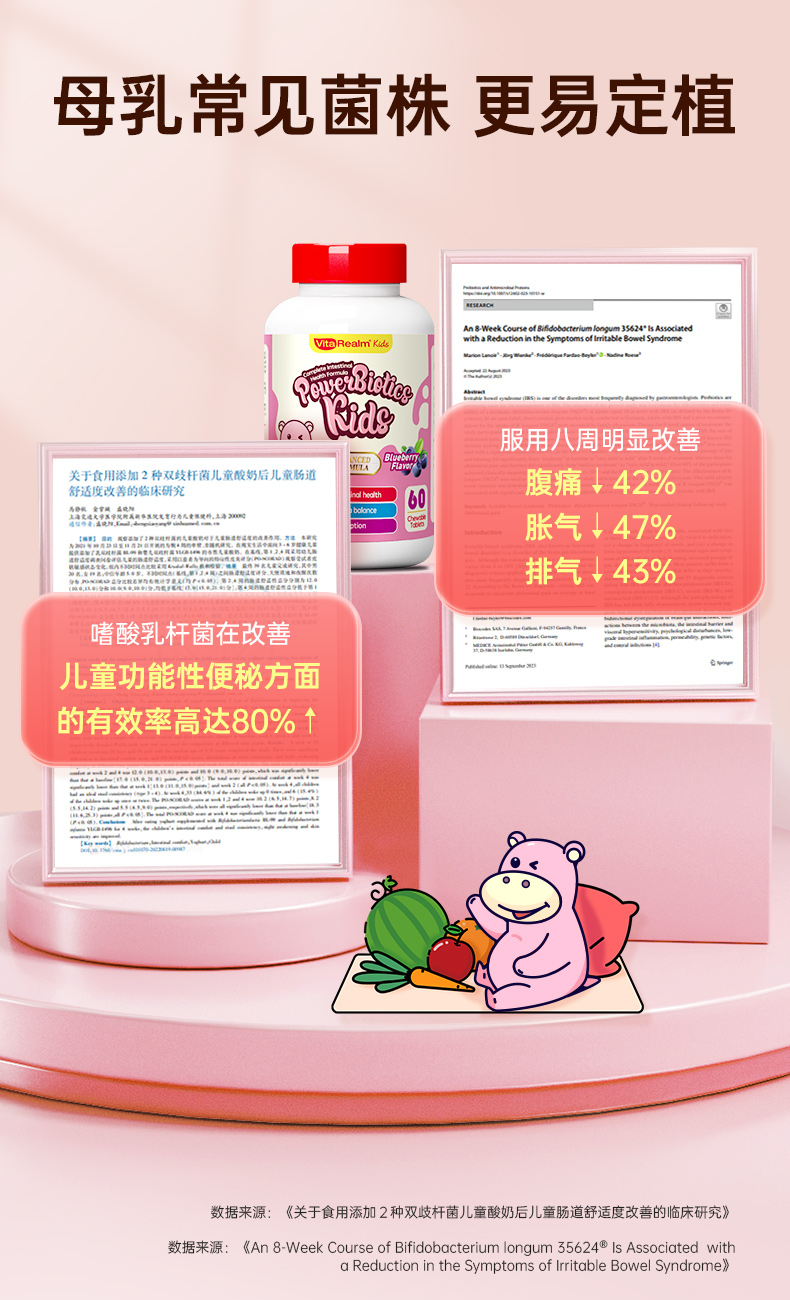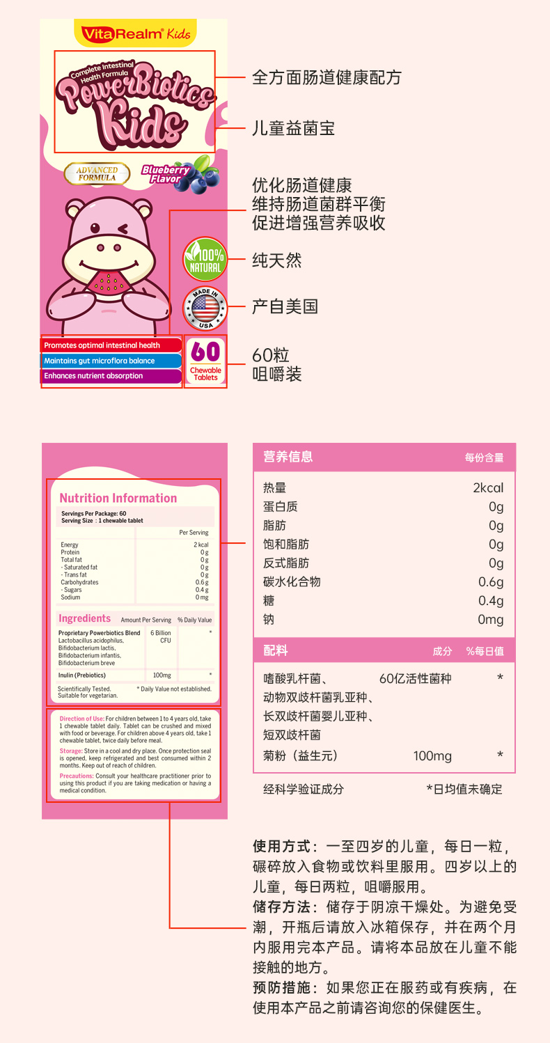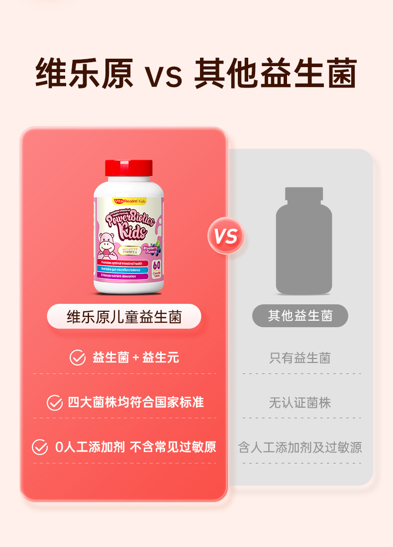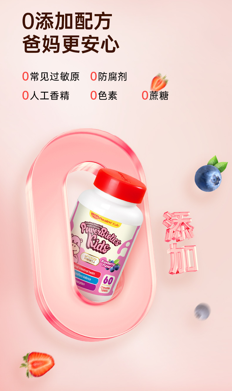 新加坡VitaRealm维乐原儿童肠胃益生菌咀嚼片60粒/盒