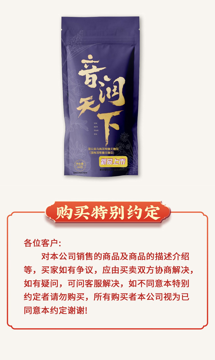 自营(音爽)-蒲梅润喉糖 2g*20颗/袋 两袋起拍