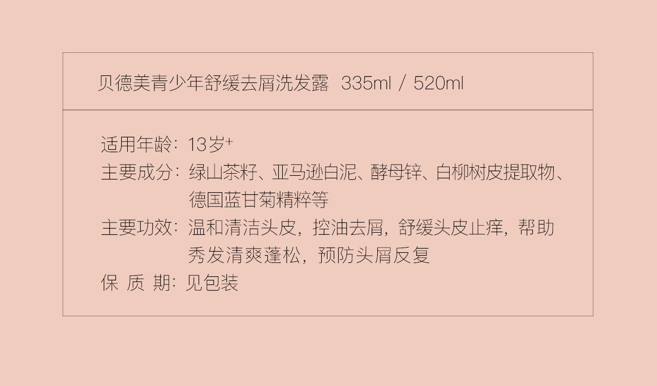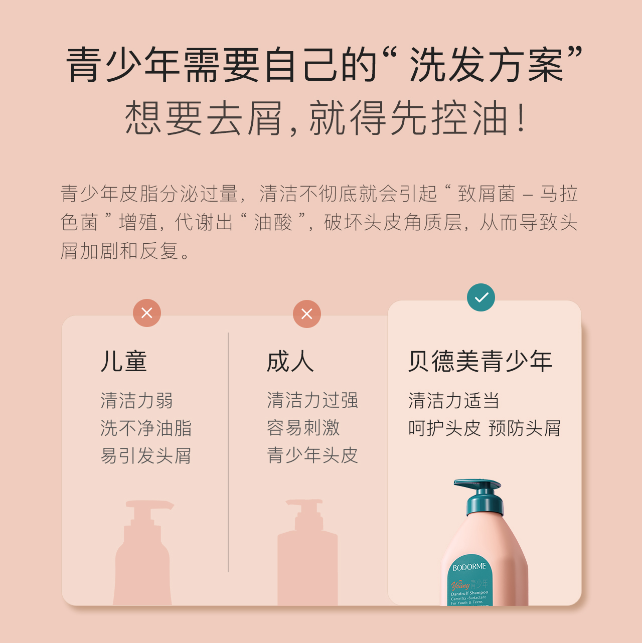 贝德美青少年去屑洗发水清爽蓬松舒缓头皮大童持久留香洗发露