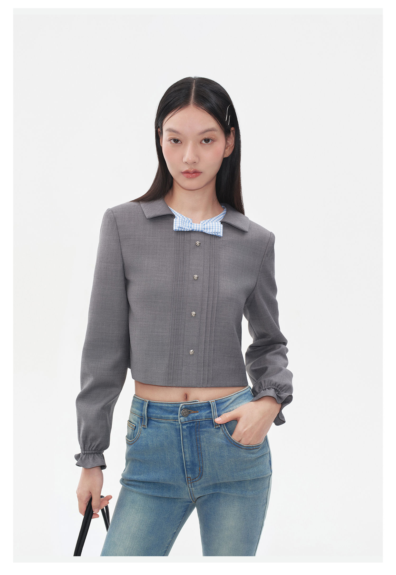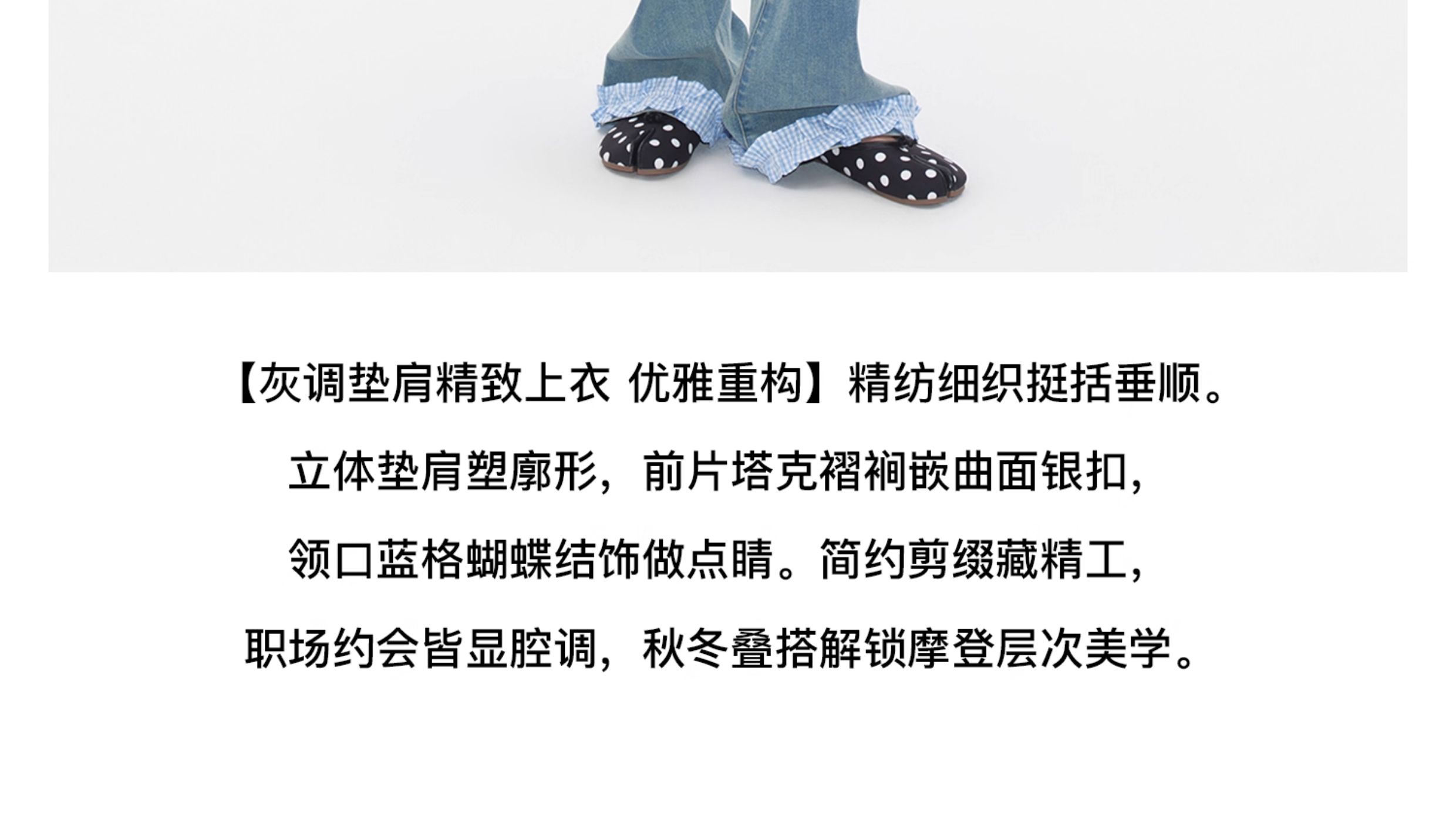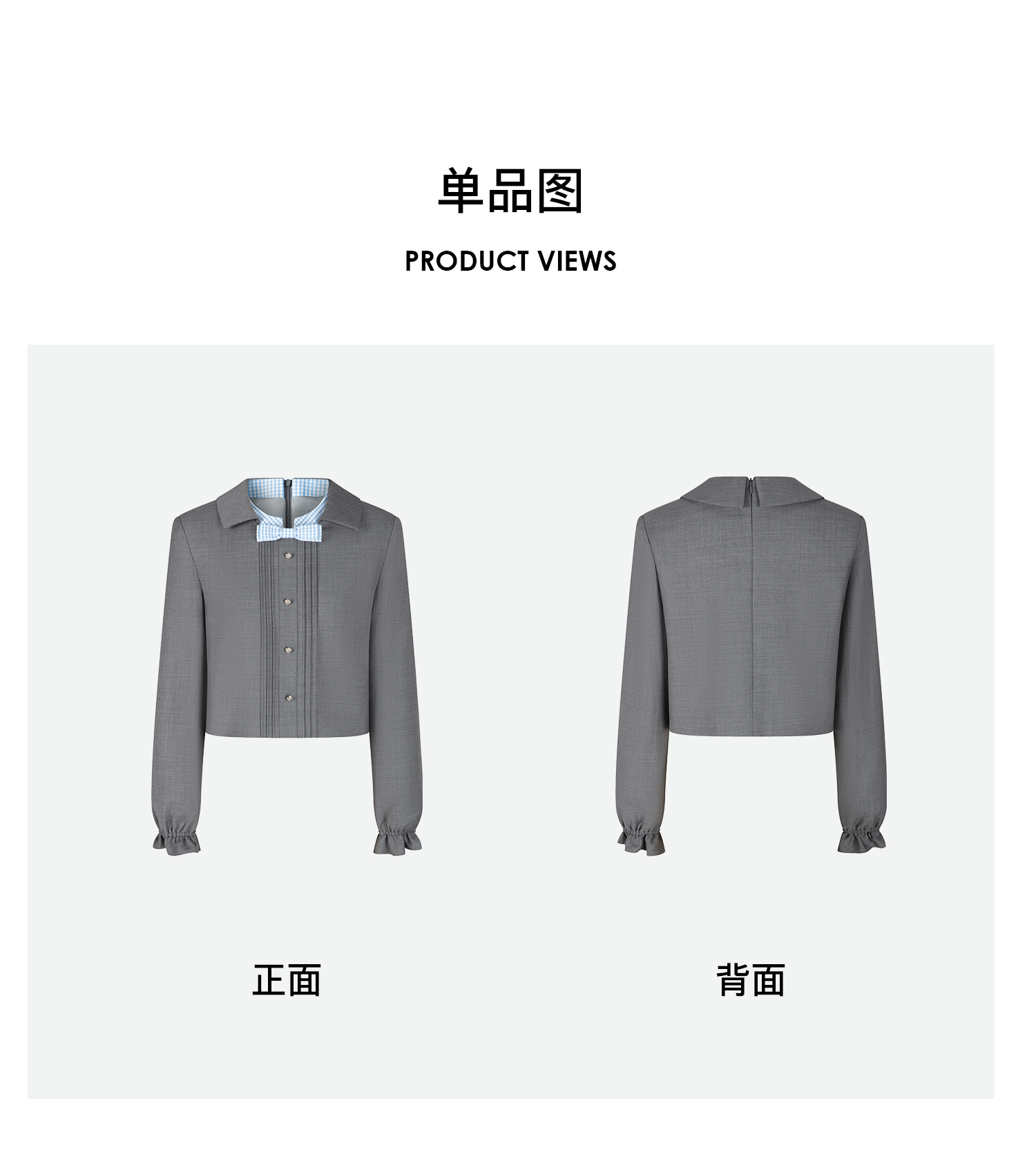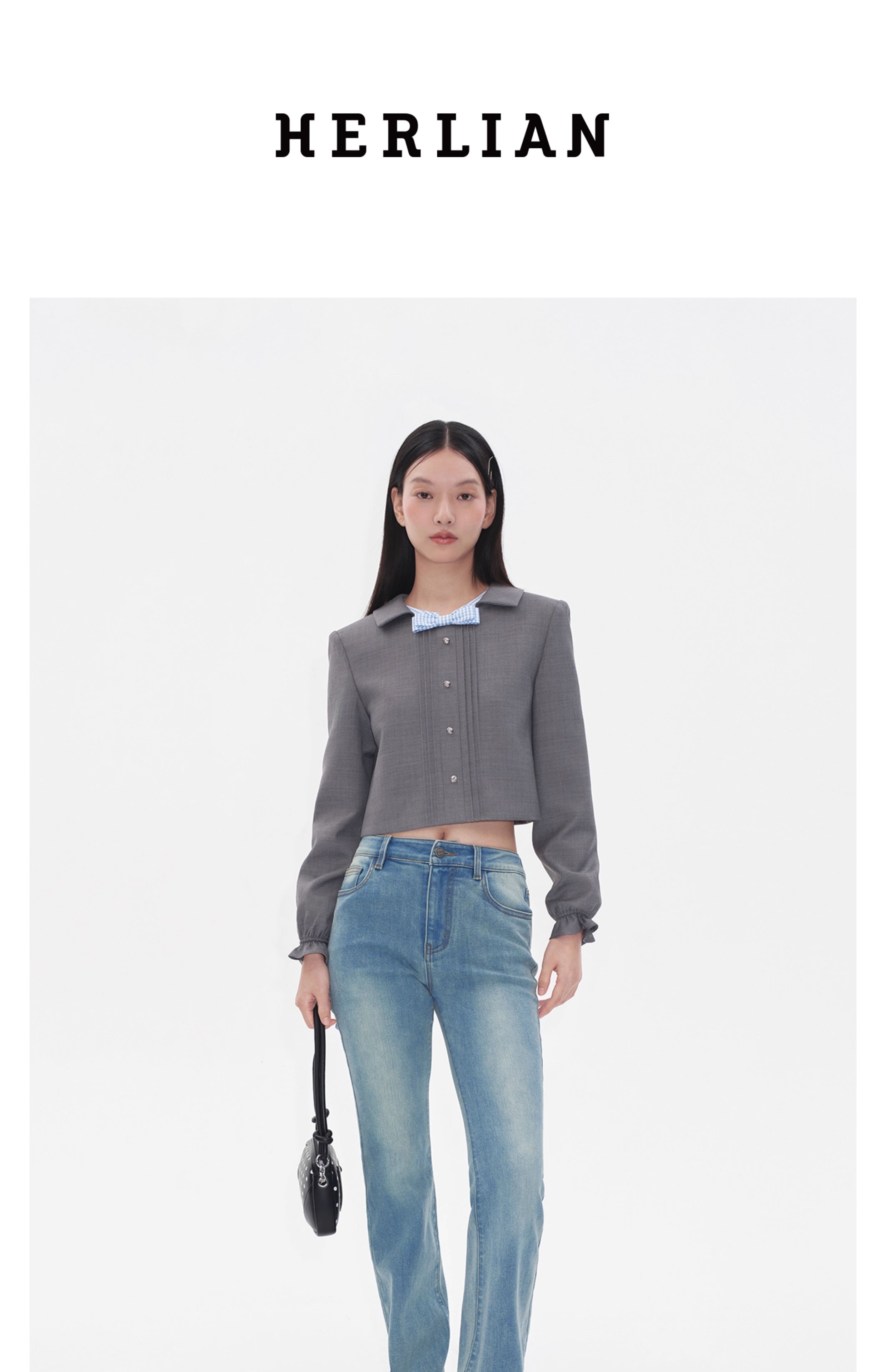 HERLIAN2025年秋季新品女士短外套格纹拼色蝴蝶结装饰娃娃领上衣