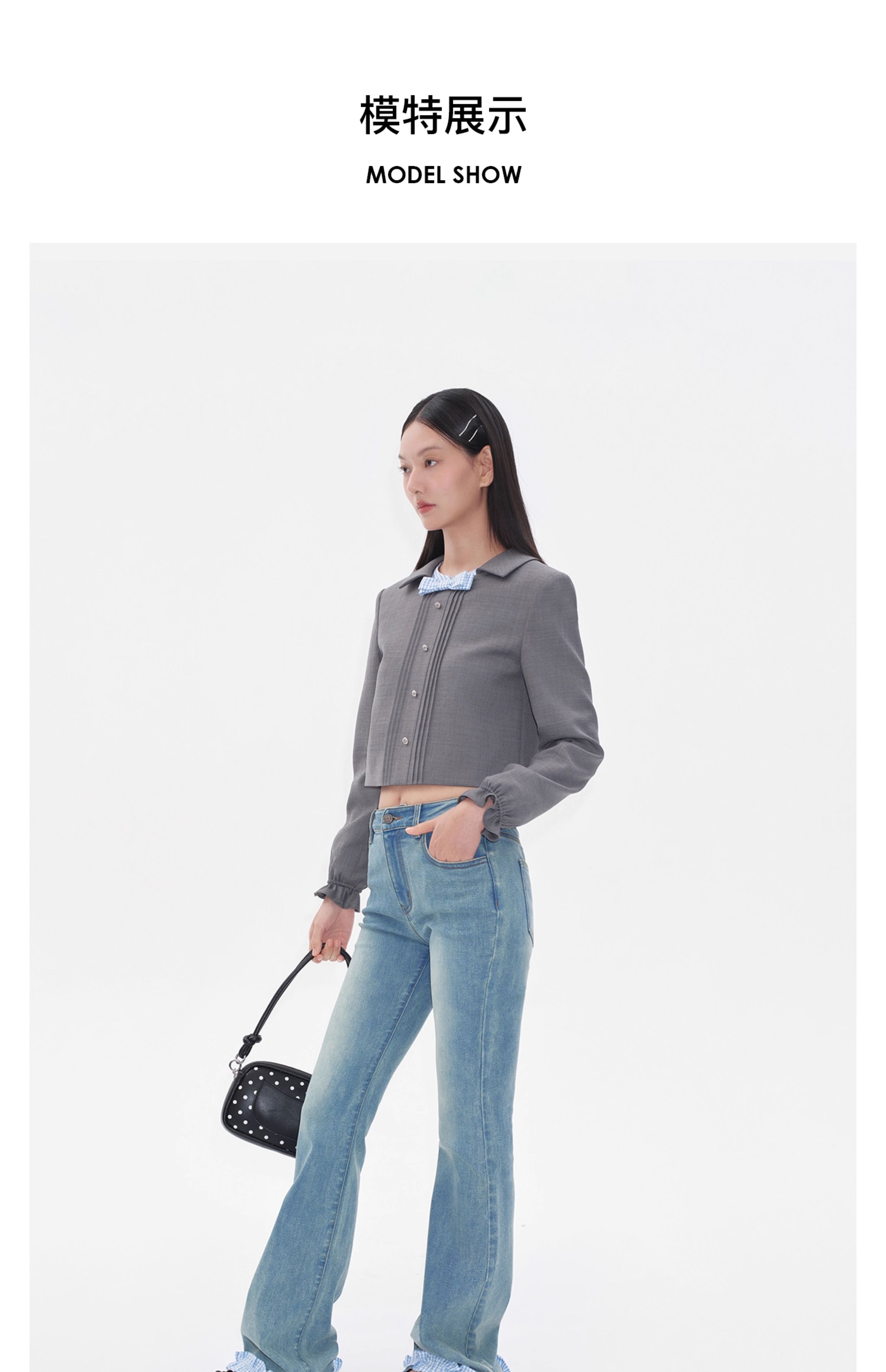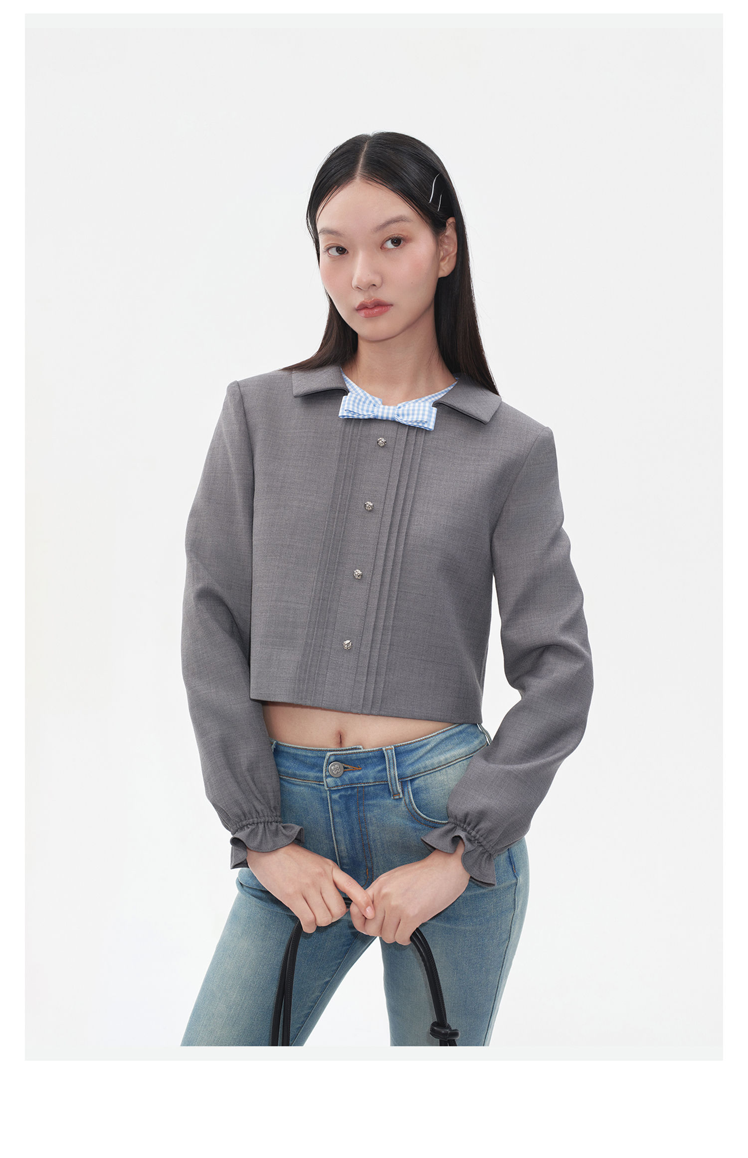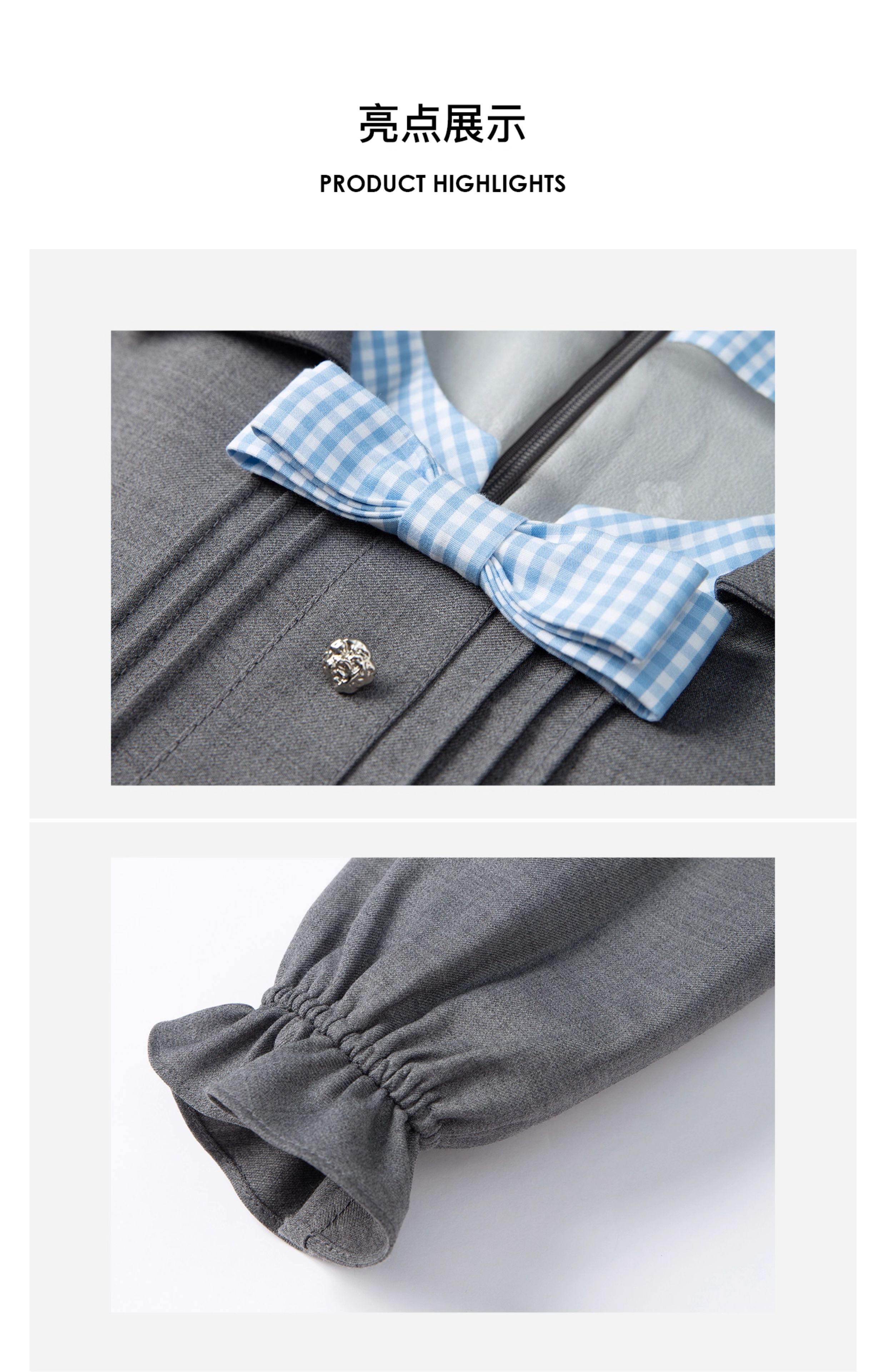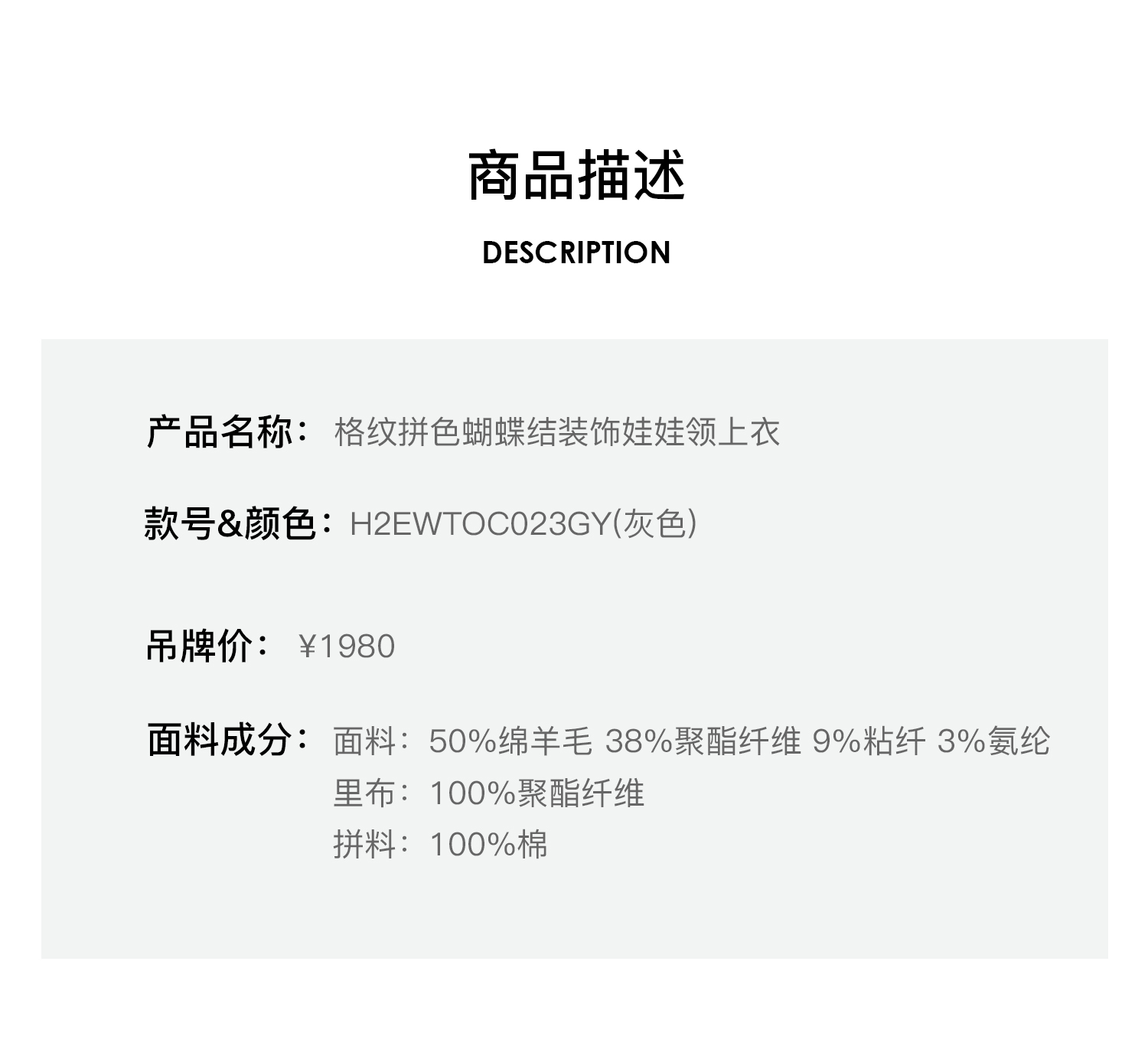 HERLIAN2025年秋季新品女士短外套格纹拼色蝴蝶结装饰娃娃领上衣